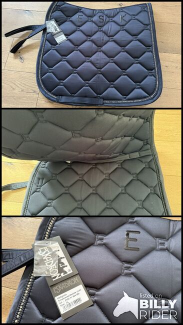 Podkładka pod siodło ujeżdżeniowe ESKADRON matowy połysk niebieski srebrny ** NOWOŚĆ ** - Nowa podkładka pod siodło firmy ESKADRON z etykietą niebieski matowy połysk ze srebrną krawędzią