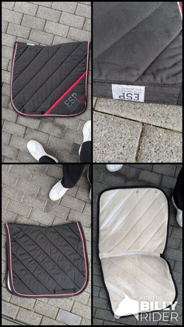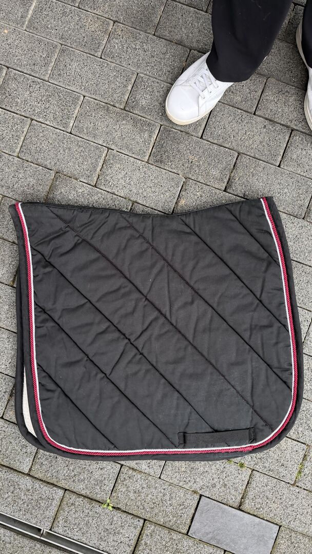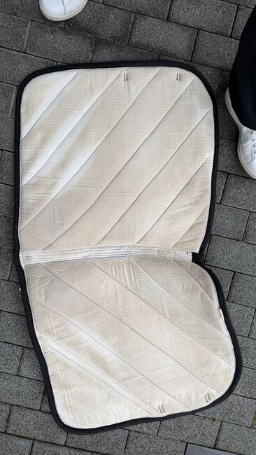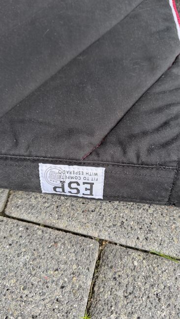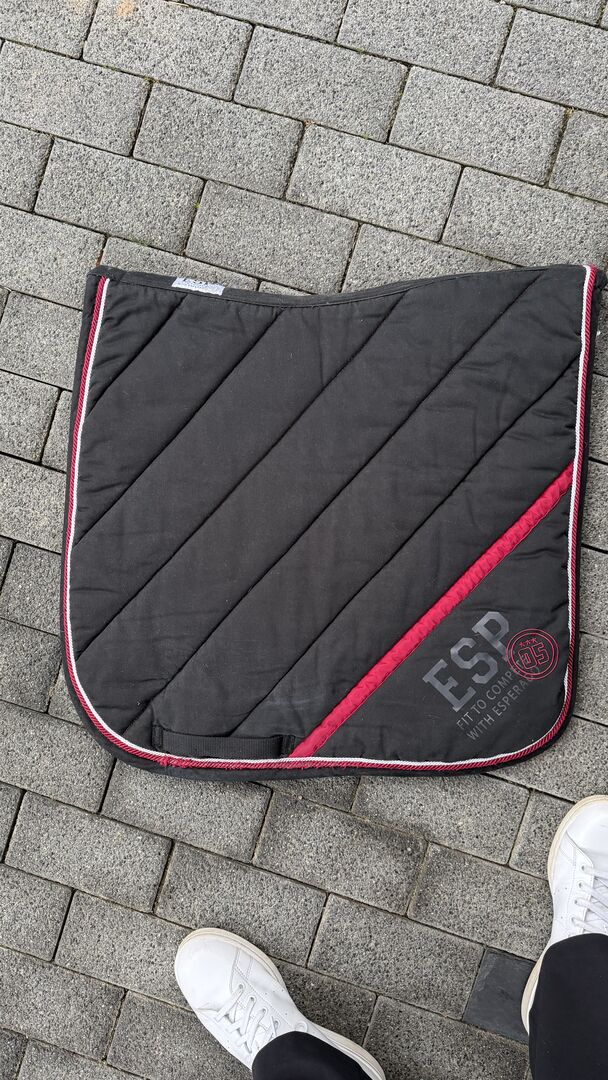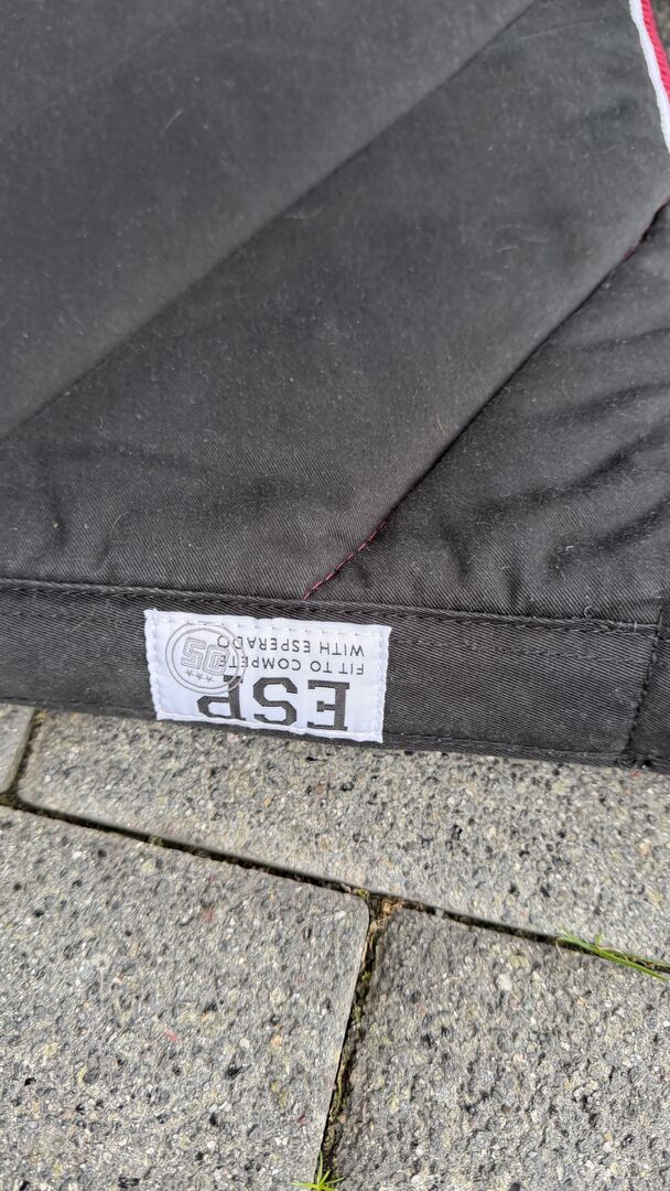 Podkładka pod siodło ujeżdżeniowe ESP - Sprzedam podkładkę pod siodło ujeżdżeniowe w kolorze czarnym od ESP. Było noszone tylko kilka razy. Niestety wnętrze odbarwiło się. Podkładka pod siodło ma niewielkie ślady zużycia.