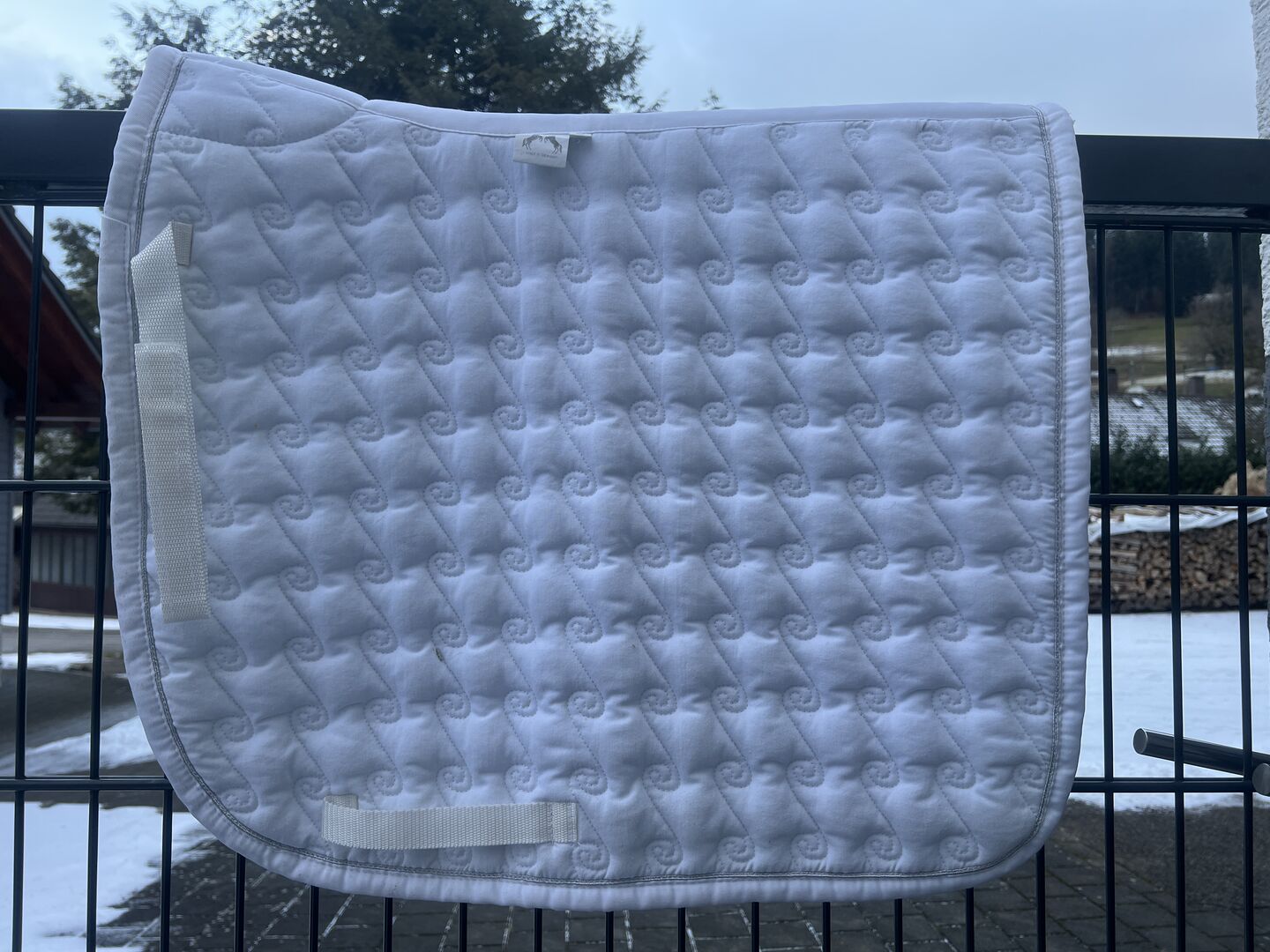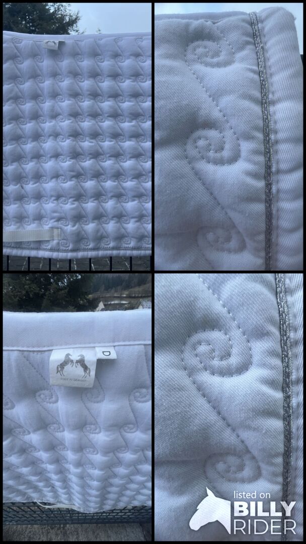 Podkładka pod siodło ujeżdżeniowe, WB, biała ze srebrną obwódką - Podkładka pod siodło, D, WB, biała ze srebrną obwódką