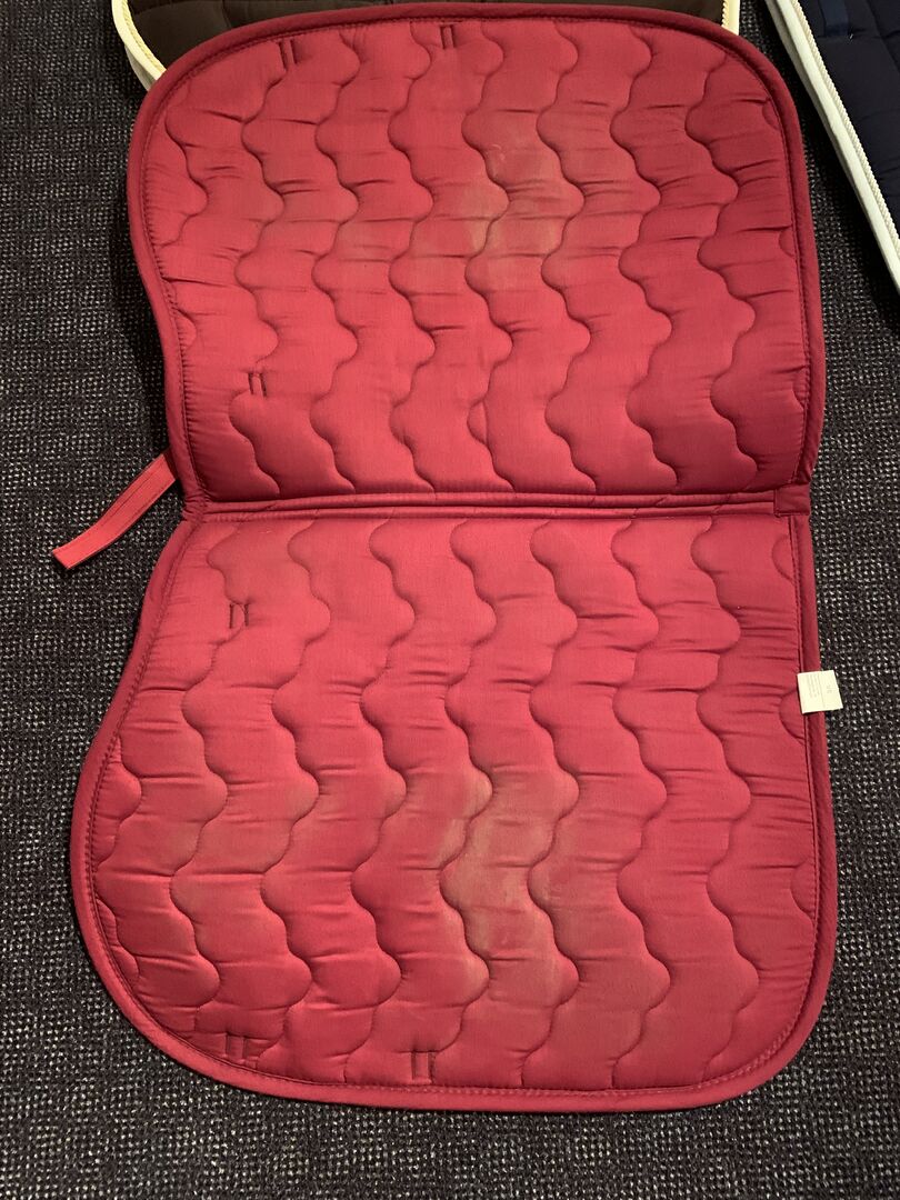 Podkładka pod siodło VS - Sprzedaję używane, ale dobrze zachowane podkładki pod siodło VS. Zostały wyprane, ale nadal widać na nich ślady użytkowania. Kolory czerwony i beżowy Cena za podkładkę pod siodło Możliwość płatności Paypal
