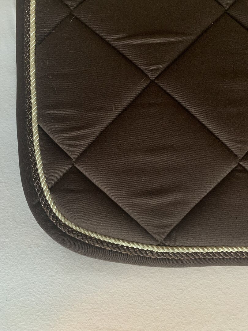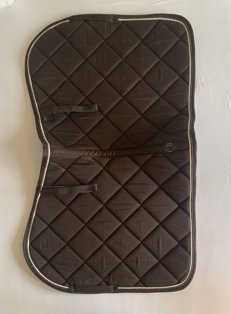 Podkładka pod siodło VS brązowa - Sprzedam podkładkę pod siodło VS w kolorze brązowym. Nieczęsto używane (ok. 6 razy), od spodu są włosy (ale na pewno wyjdą po umyciu). Podkładkę pod siodło można odebrać lub wysłać za dodatkową opłatą (5€). Brak możliwości zwrotu lub gwarancji, ponieważ jest to sprzedaż prywatna.