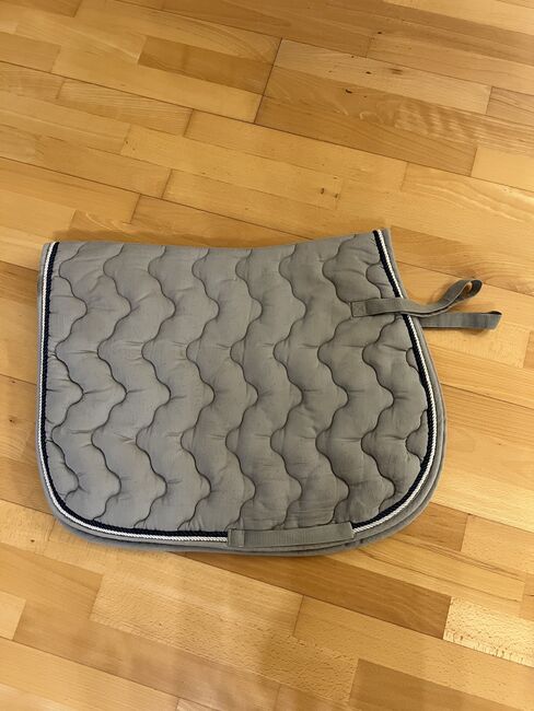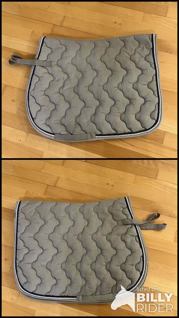 Sprzedam chętnie używaną podkładkę pod siodło Loesdau w bardzo ładnym jasnoszarym kolorze z niebieskim i białym sznurkiem. Stan bardzo dobry. Podkładka pod siodło jest nieco grubsza, dzięki czemu świetnie leży na koniu i działa również jako wyściółka.