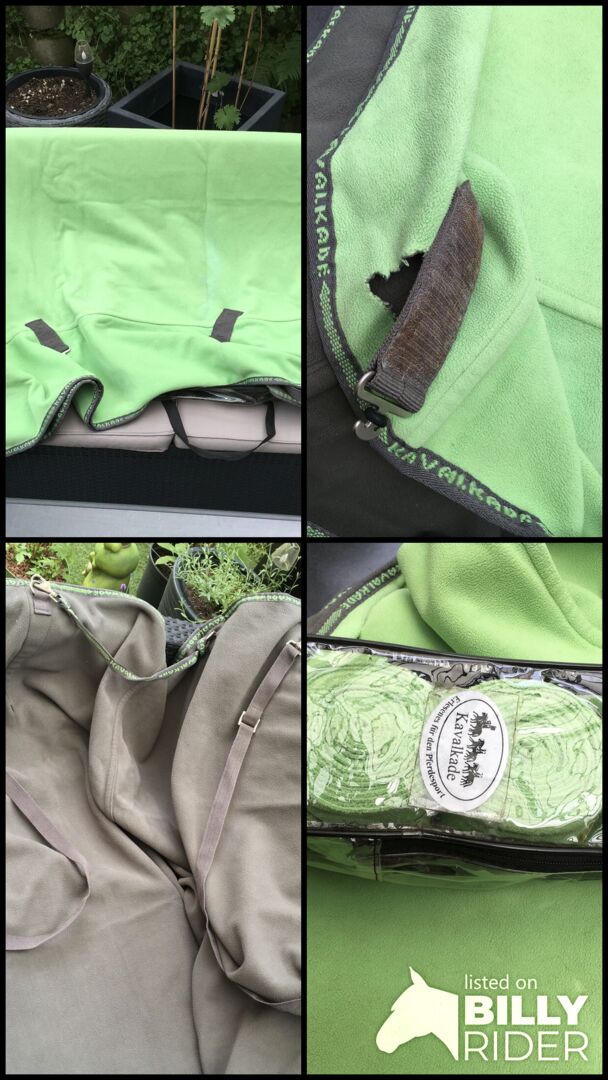 Podkładka pod siodło w kolorze jabłkowej zieleni z krzyżowymi karabińczykami - Używany dres w kolorze jabłkowej zieleni z szarymi poprzecznymi klamrami dla bezpiecznego dopasowania, w tym pasującymi klamrami. Przyciąga wzrok! Wymiary: 155 cm