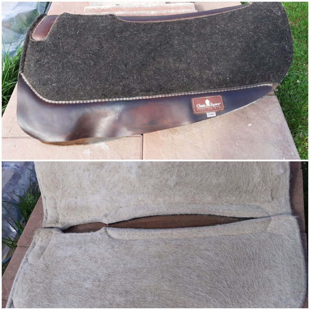 Podkładka pod siodło Western - Westernpad Roundskirt Powierzchnia podparcia 70 cm Kolor brązowy Dobrze używany Podkładka filcowa, podkład filcowy zużyty, ale nie uszkodzony