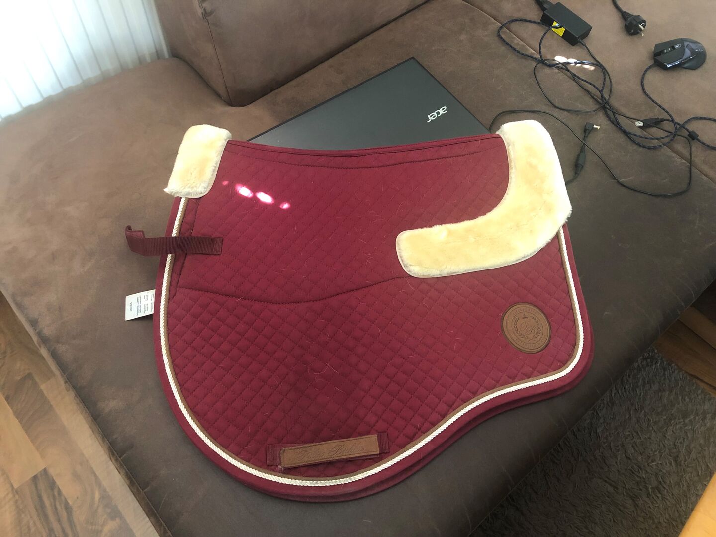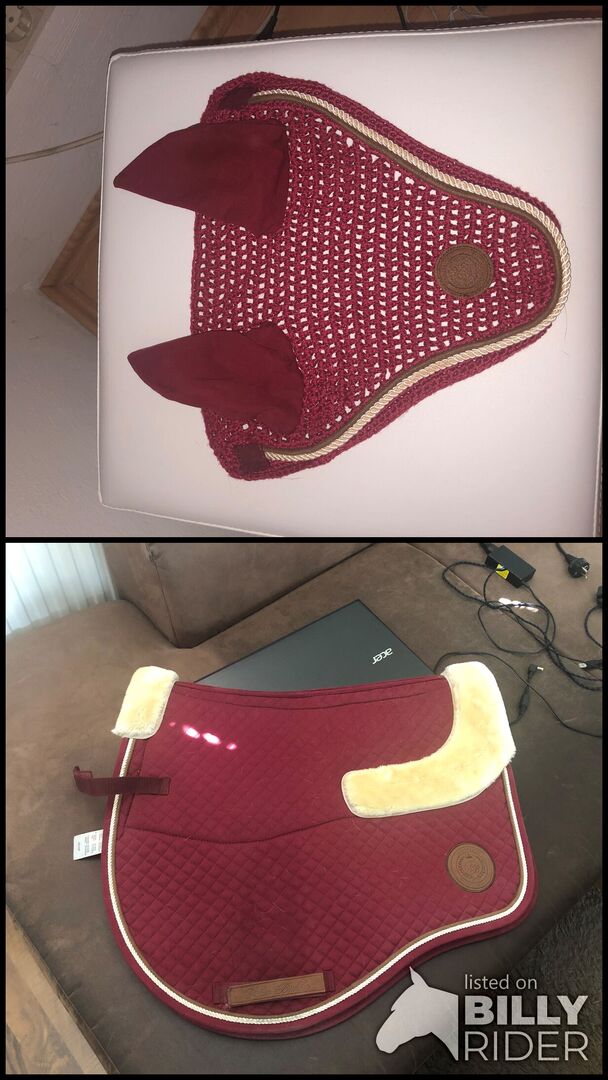 Podkładka pod siodło z maską na muchy - Sprzedam podkładkę pod siodło FB i maskę na muchy (rozmiar Cob). Zostanie wyprana/wyczyszczona przed sprzedażą!