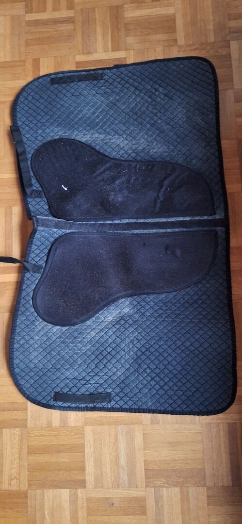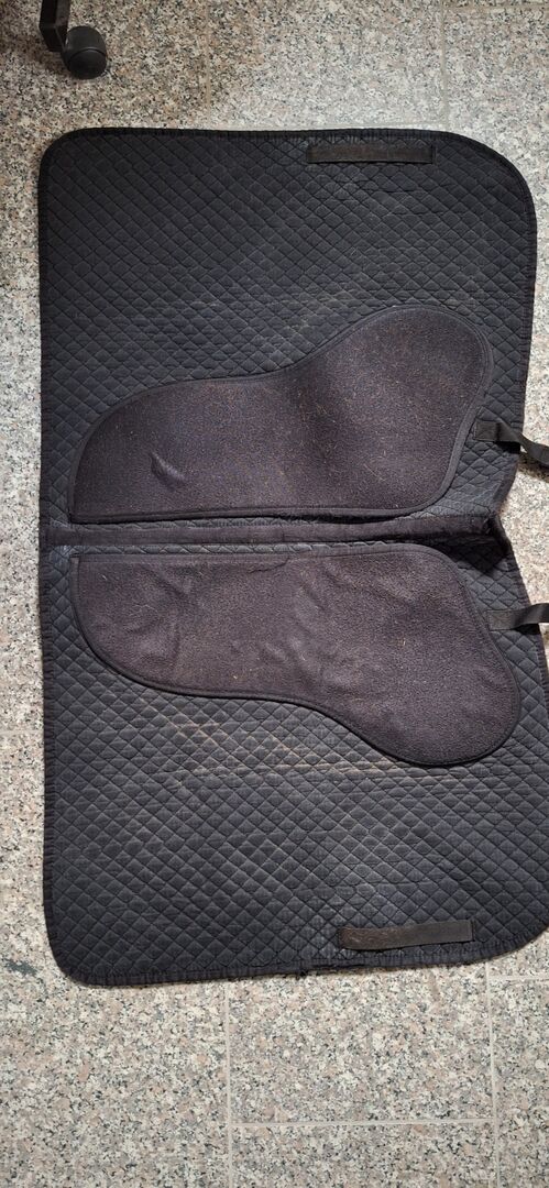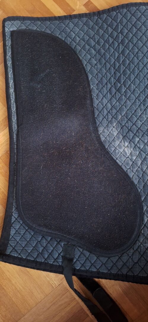 Podkładka pod siodło z nakładką z gumy piankowej - Czarna podkładka pod siodło z naszytą gumową nakładką z pianki Górny szew otwarty, aby w razie potrzeby można było zmienić podkładkę Szerokość ujeżdżeniowa 63 cm Długość 53 cm Sprzedaż prywatna bez gwarancji i bez możliwości zwrotu