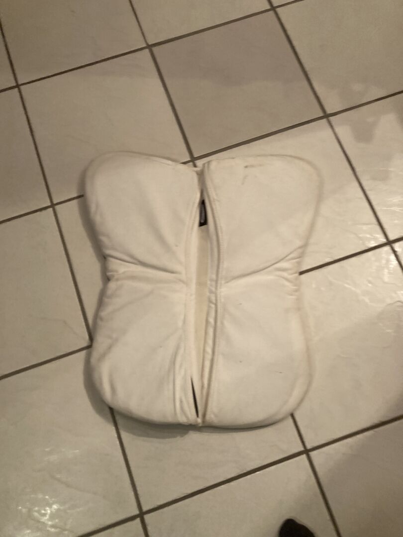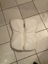 Podkładka pod siodło z pianki z pamięcią kształtu w kolorze białym - Podkładka pod siodło w dobrym stanie z pianki memory foam w kolorze białym z kieszeniami na wkładki korekcyjne