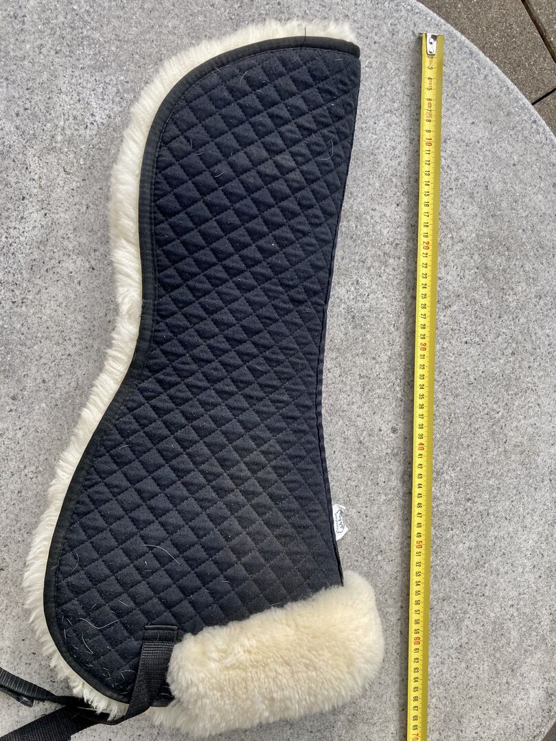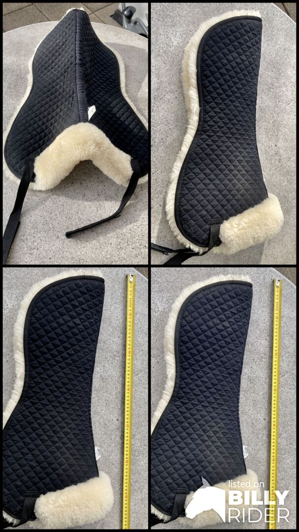 Podkładka pod siodło ze skóry jagnięcej - Używana podkładka pod siodło w kolorze czarnym wykonana z prawdziwej skóry jagnięcej. Wymiary ok. 57 cm x 54 cm. Anatomicznie ukształtowany i wycięty bardzo wysoko w kłębie. Podkładka pod siodło została profesjonalnie wyczyszczona po ostatnim użyciu i wykazuje jedynie niewielkie ślady użytkowania, a także pozostałości włosów. Z przyjemnością odpowiem na wszelkie dalsze pytania!
