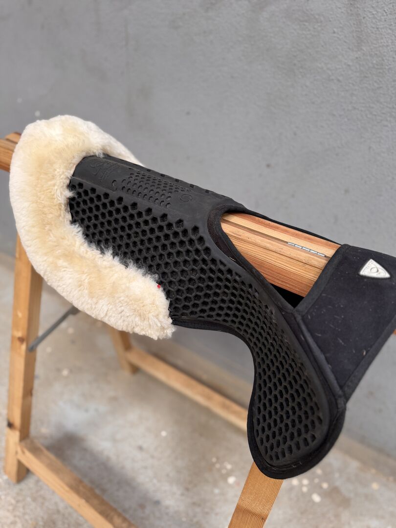 Podkładka żelowa pod siodło Acacallo bez więdnięcia - Podkładka żelowa Acavallo ze strukturą plastra miodu i jagnięcą skórą. Podkładka jest specjalnie zaprojektowana dla koni z wysokim kłębiem. Możliwa jest wysyłka