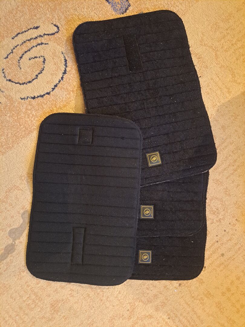 Podkładki bandażowe czarne - Sprzedam używane ochraniacze na bandaże z zapięciem na rzep w kolorze czarnym od BR w rozmiarze warmblood.