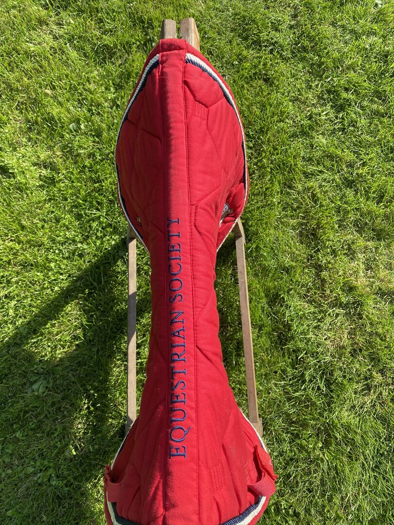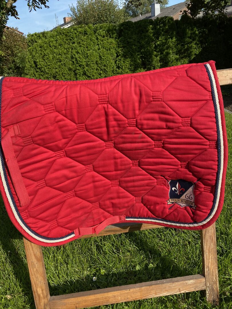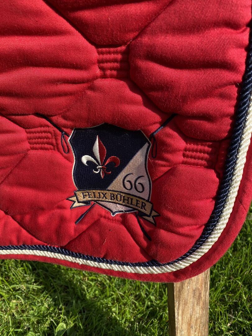 Podkładki pod siodła i bandaże - Sprzedam czerwoną podkładkę pod siodło Felix Bühler wraz z pasującymi bandażami.