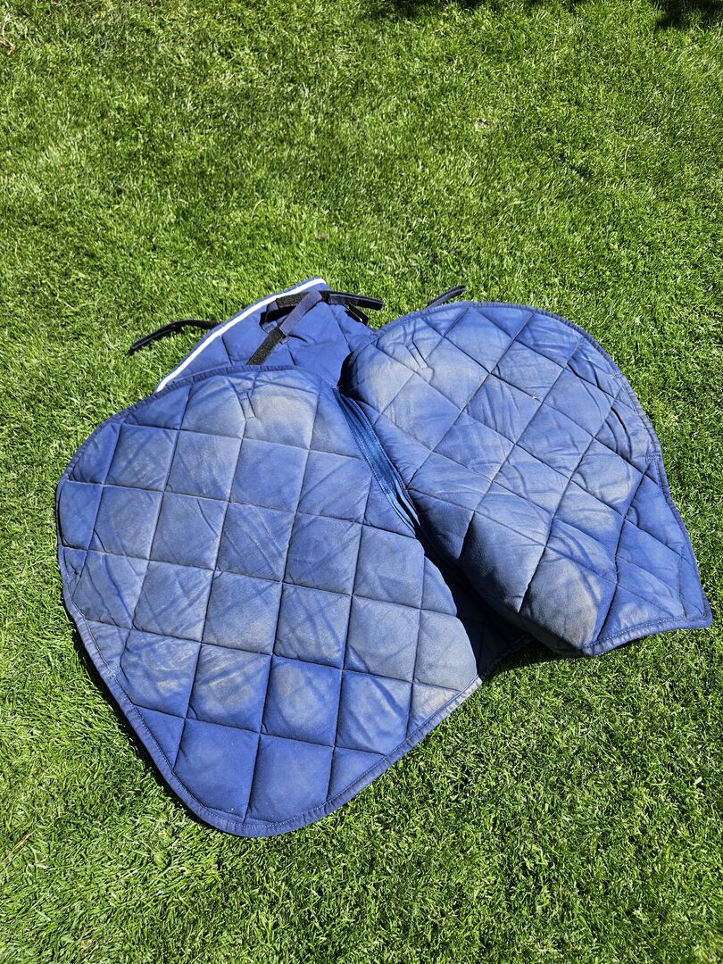 Podkładki pod siodło niebieskie 2 szt. - Podkładki pod siodło od Lanz Anliker. Nie prane. Brak uszkodzeń, ale ślady zużycia.