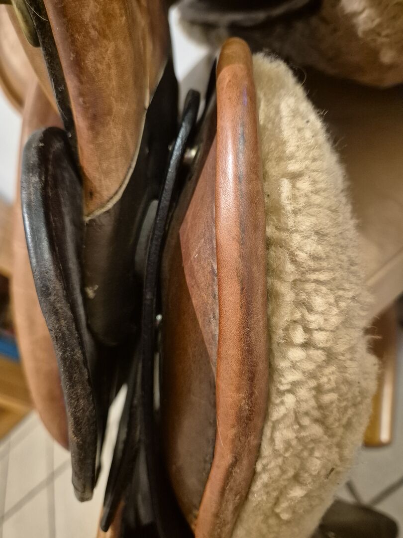 Kanał grzbietowy ma szerokość od 9 do 14 cm, w zależności od regulacji. Panele mają długość 57 cm, ale jest to celowe, aby rozłożyć ciężar jeźdźca na dużej powierzchni, szczególnie podczas dłuższych przejażdżek. Niemniej jednak siodło nadaje się również dla koni o krótkich grzbietach. Mój rymarz dopasował siodło zarówno do mojej szerokiej klaczy rasy Haflinger, jak i do mojej 4-letniej klaczy rasy Arabohaflinger z krótkim grzbietem. Siodło jest dopasowane bardziej do przodu jak siodło westernowe, więc nie leży daleko z tyłu. Powierzchnia siedziska mierzona od zewnętrznych krawędzi wynosi 50 cm, czysta powierzchnia siedziska mierzona od wewnątrz wynosi 40 cm. Noszę rozmiar 40 i pasuję idealnie, podobnie jak inni jeźdźcy noszący rozmiary 36 i 44. Zwykle miałem skórę na siodle i traktowałem siodło bardzo ostrożnie.