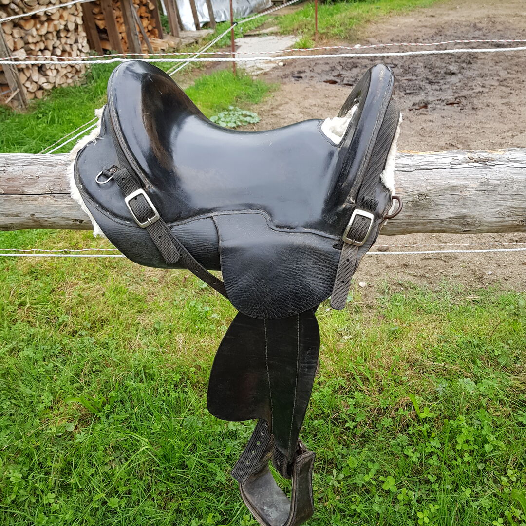 Podróżujące siodło Stonewell - Nowo tapicerowane lekkie siodło z oryginalnej firmy Stonewell Saddle Company w Kalifornii. Było używane do jazdy w terenie. Długość ok. 50 cm, waga ok. 7 kg