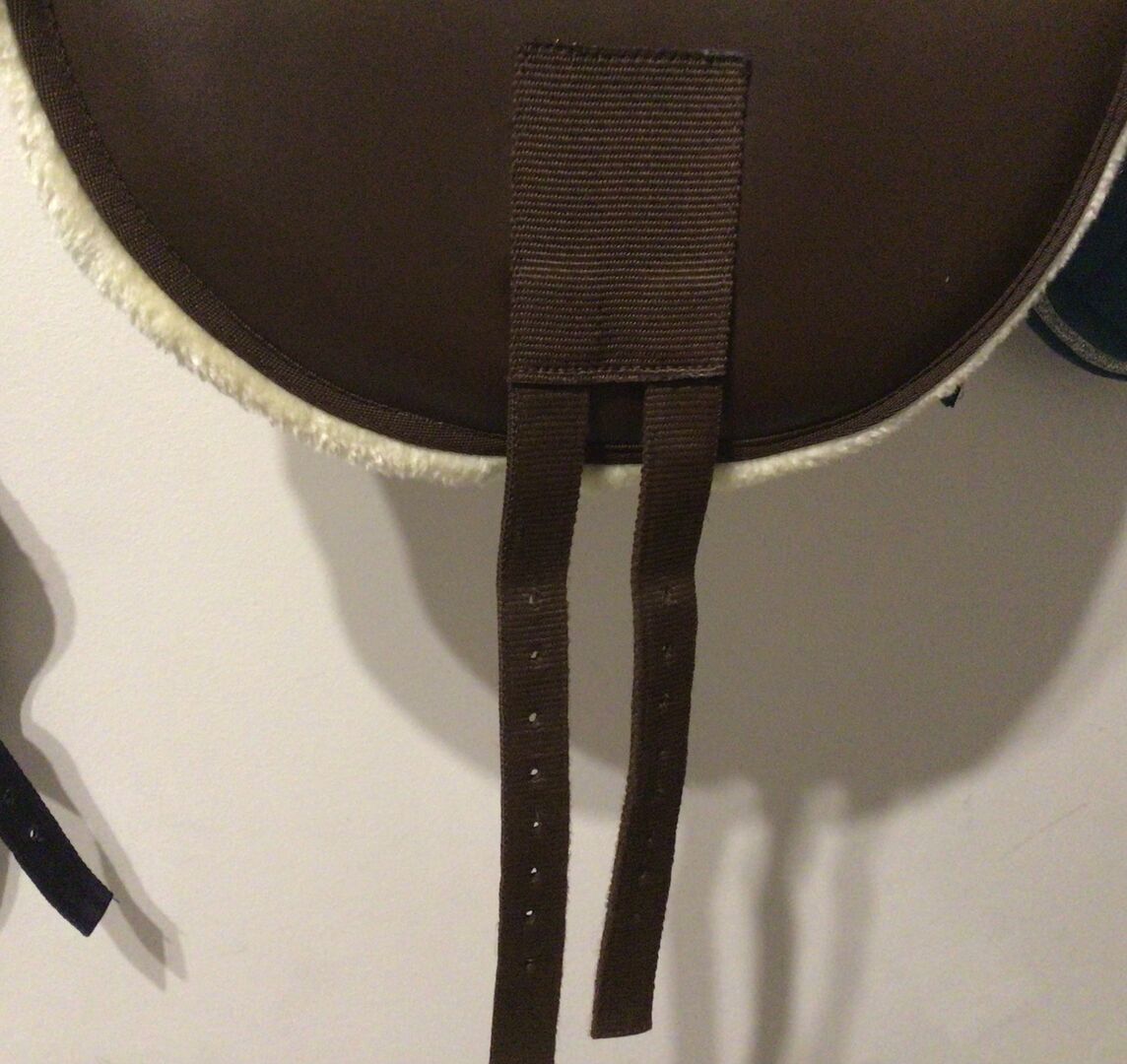 Poduszka do jazdy konnej z jagnięcej skóry - Podkładka jeździecka wykonana ze skóry jagnięcej (nie jest to prawdziwa skóra jagnięca) w rozmiarze Cob z brązowym uchwytem. Nigdy nie był na prawdziwym koniu!