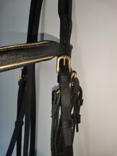 Z 2 pasującymi parami wodzy (czarne ze złotymi okuciami)