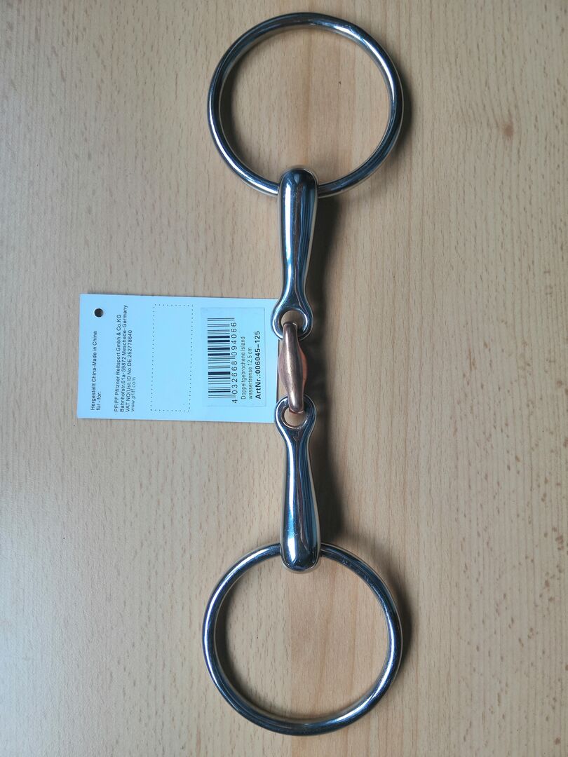 Podwójnie łamany karabińczyk islandzki wykonany ze stali nierdzewnej 12,5 cm - Podwójnie przegubowy wędzidło islandzkie wykonane ze stali nierdzewnej z miedzianym środkiem. Miedziana część środkowa stymuluje pysk konia. Materiał: stal nierdzewna z miedzianym środkiem. Grubość 16 mm Pierścień 6,5 cm 12,5 cm Kupiłam wędzidło dla mojej klaczy, ale jest za małe. Oczywiście zupełnie nowy i rozpakowany tylko do zdjęcia.