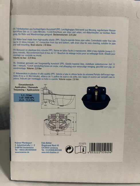 Poidło plastikowe SHOWMASTER K75, 2,8 litra. - Plastikowa miska do picia, 2,8 litra, niebieska