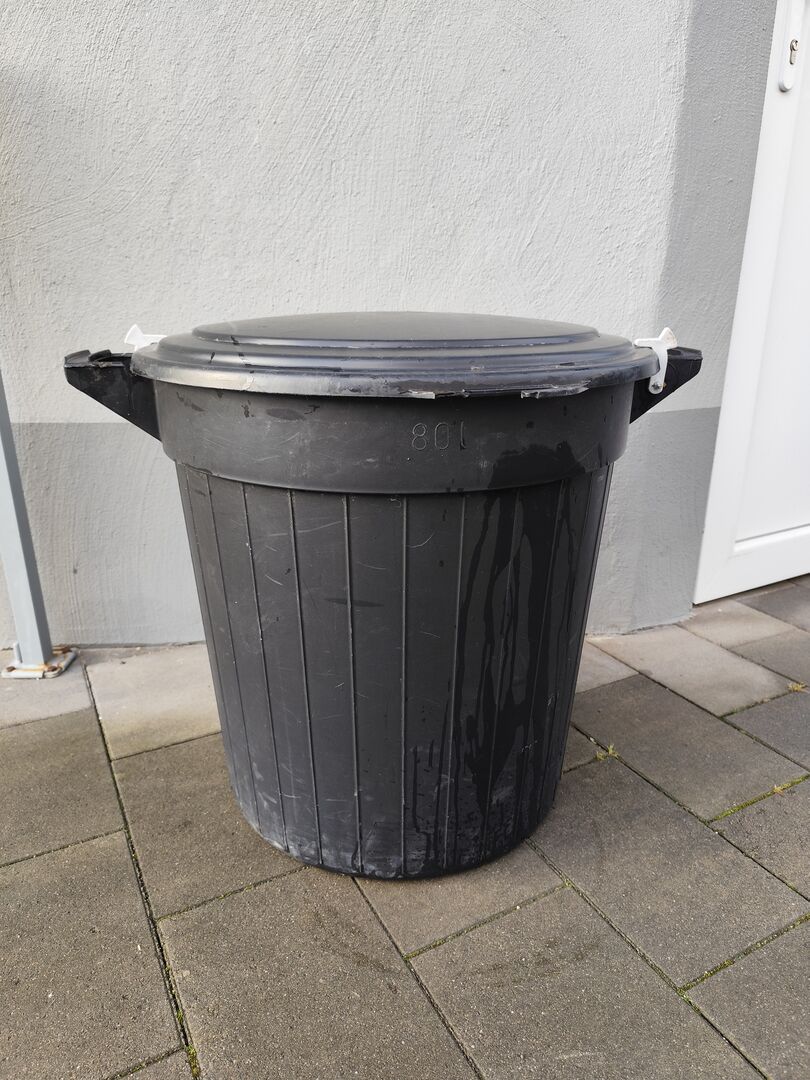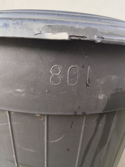 sprzedajemy tutaj nasz 80-litrowy pojemnik na paszę. Jest zamykany na klucz. Jeden uchwyt jest trochę uszkodzony, ale nie ma to wpływu na użytkowanie.