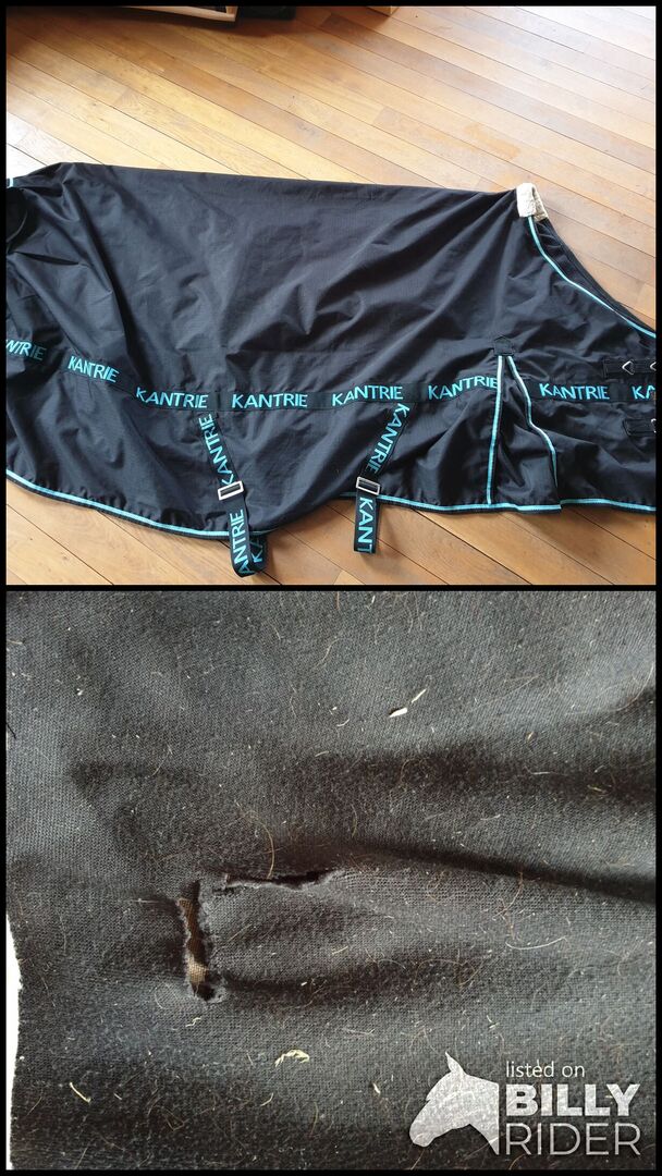 Pokrowiec przeciwdeszczowy - Sprzedam derkę przeciwdeszczową z polarową podszewką w 155 roku! Derkę kupiłam sama z drugiej ręki na szczęście, moja była tylko na koniu do przymiarki, niestety jest za duża! Jest małe rozdarcie na kłębie, ale można to szybko naprawić igłą i nitką. Możliwość płatności przez Paypal + wysyłka
