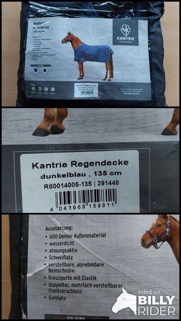 Pokrowiec przeciwdeszczowy Kantrie 0g 135 - Ledwo noszona derka dla konia od Kantrie na sprzedaż, ponieważ jest za duża dla mojego konia. Świeżo wyprana, ale w zapięciu na rzep jest trochę końskiej sierści.