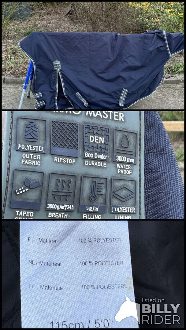 Pokrowiec przeciwdeszczowy Thermo Master 115 cm - Na sprzedaż bardzo dobrze zachowany dywanik przeciwdeszczowy marki Thermo Master. Dywan ma długość grzbietu 115 cm, jest świeżo wyprany i zaimpregnowany. Ponadto dywan nie był prawie noszony i dlatego jest wolny od wad.