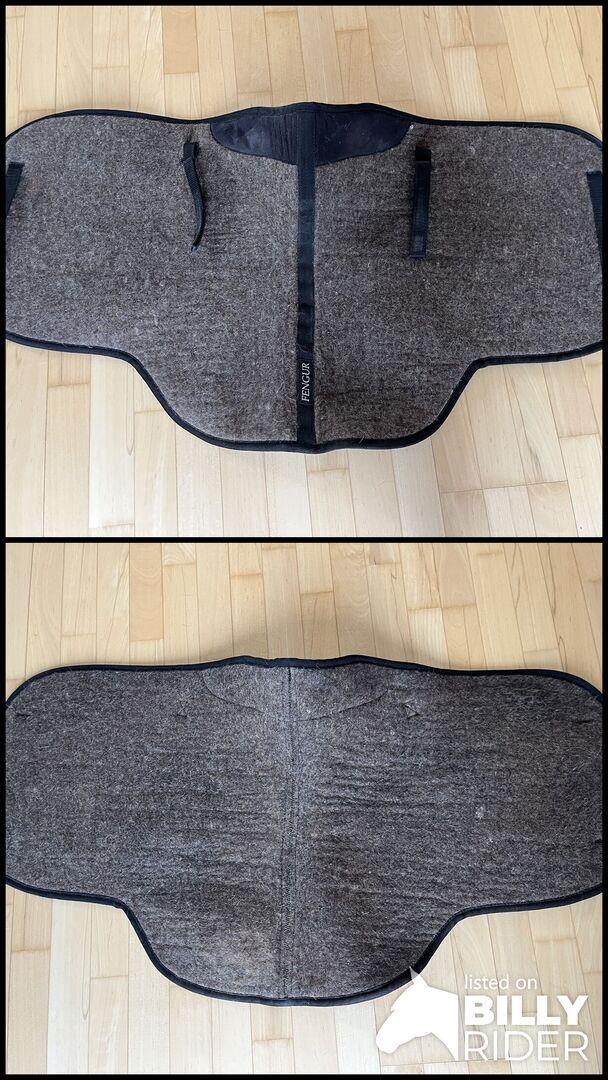 Pokrycie siodełka FENGUT Filc - Stan: Używany, ale w dobrym lub bardzo dobrym stanie (wyczyszczone ręcznie - oczywiście pozostało kilka końskich włosów, nie wykryto żadnych uszkodzeń, tylko niewielkie przebarwienia / minimalne ślady nacisku podczas użytkowania)