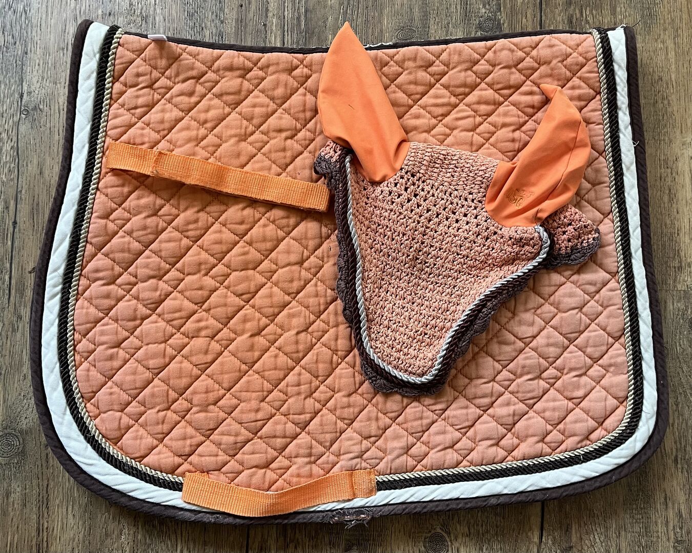 Pomarańczowa podkładka pod siodło USG wraz z pasującą maską na muchę - Sprzedaż prywatna bez gwarancji Mało używana podkładka pod siodło wraz z maską na muchy