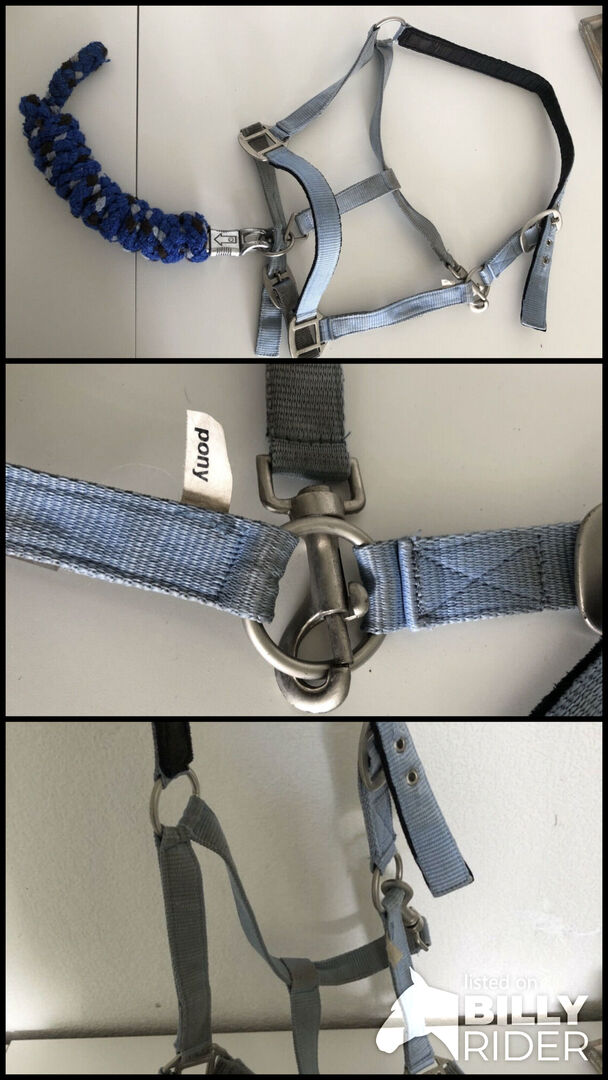 Ponyhalfter + Strick blau (- Halfter )