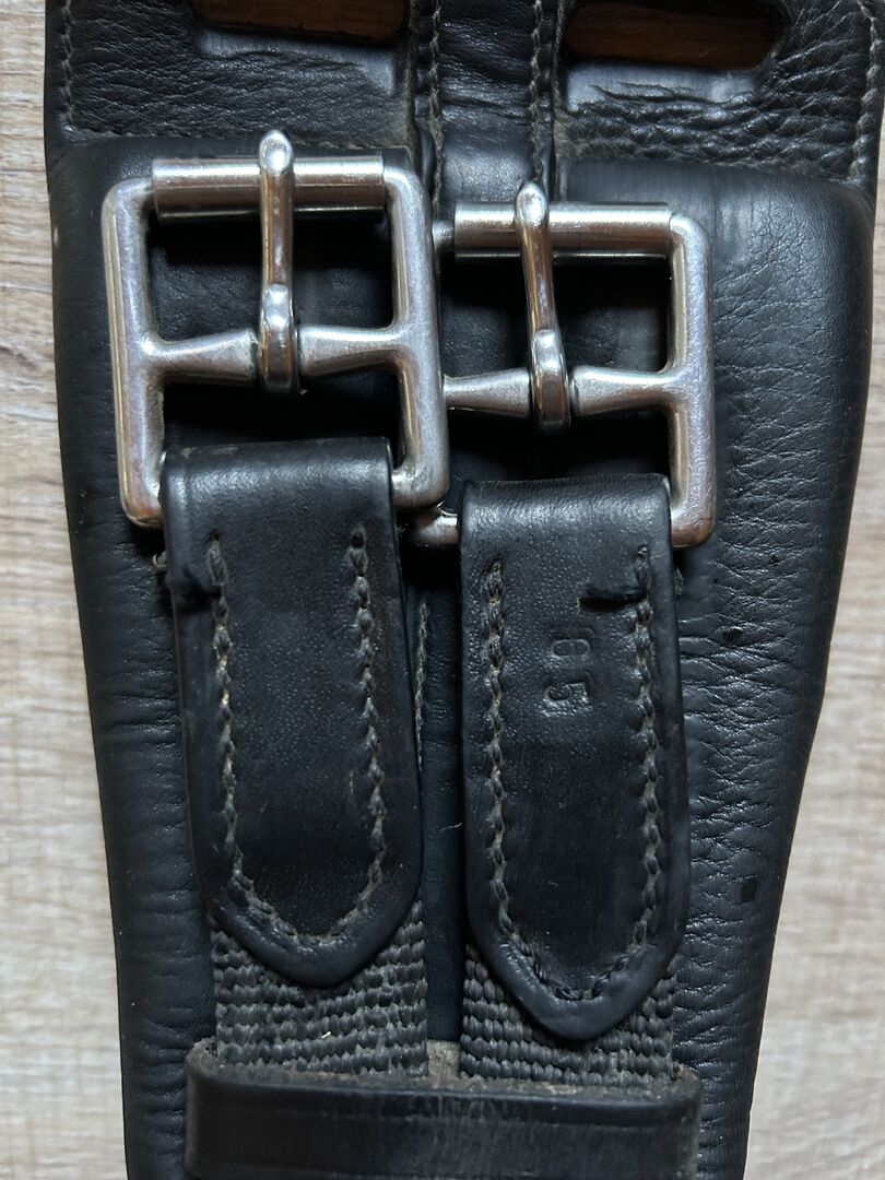 Popręg siodłowy skórzany Otto Schumacher 65 cm - Dobrze utrzymany czarny skórzany popręg siodłowy Otto Schumacher z gumką po jednej stronie, długość 65 cm.
