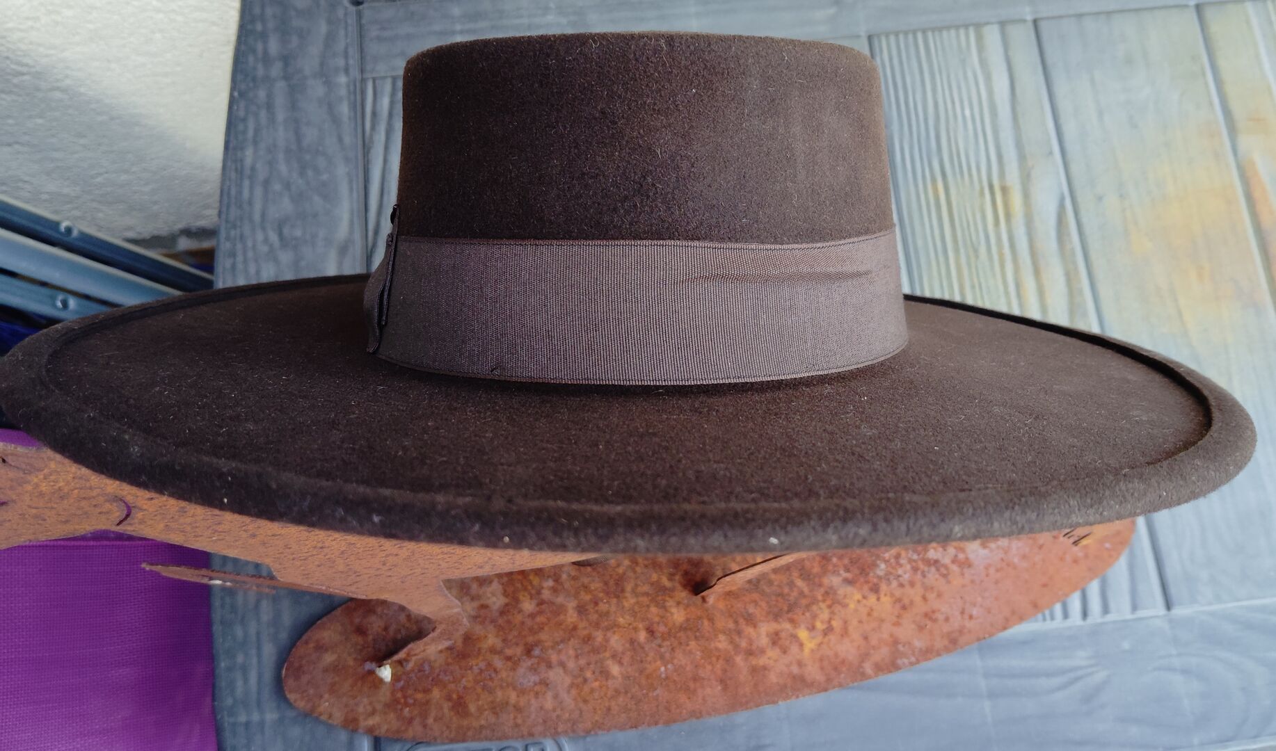 Portugalski kapelusz - Ciemnobrązowy, wysokiej jakości kapelusz cabalhero, renomowanego producenta, rozmiar 54, założony tylko raz. Nadaje się do hiszpańskich lub portugalskich strojów jeździeckich