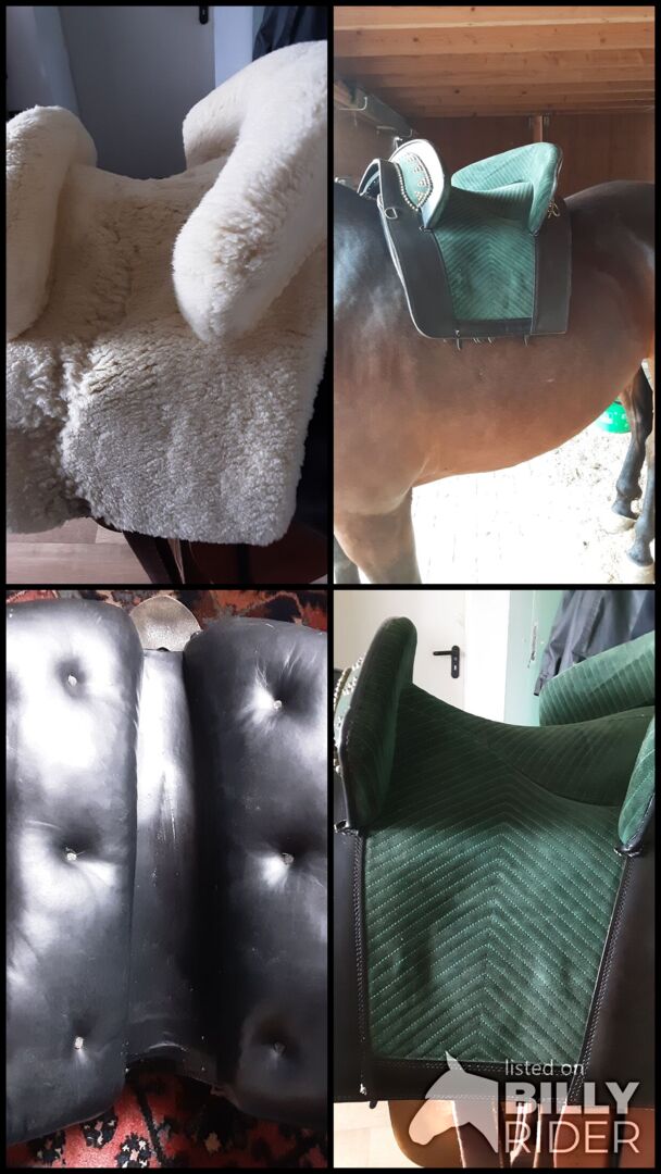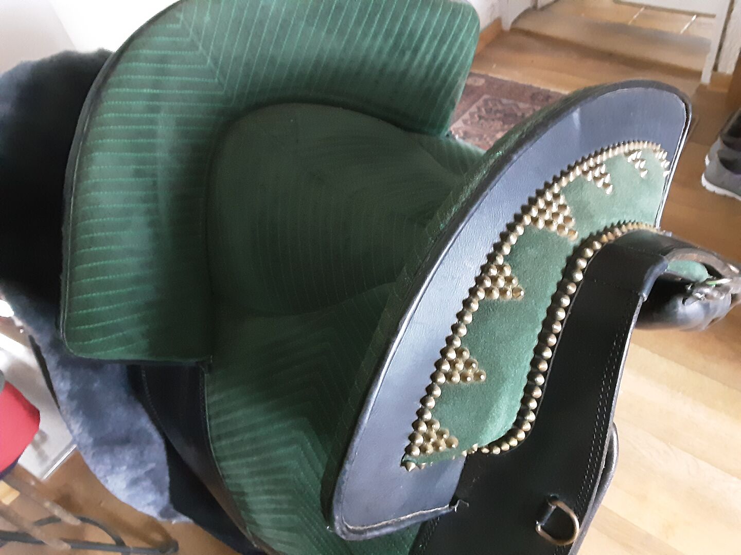 Portugalskie siodło - Dobrze zachowane, wygodne siodło, które zapewnia bezpieczeństwo, z pasującą Zaleą wykonaną z jagnięcej skóry, spód siodła z czarnej skóry, więcej zdjęć na życzenie.