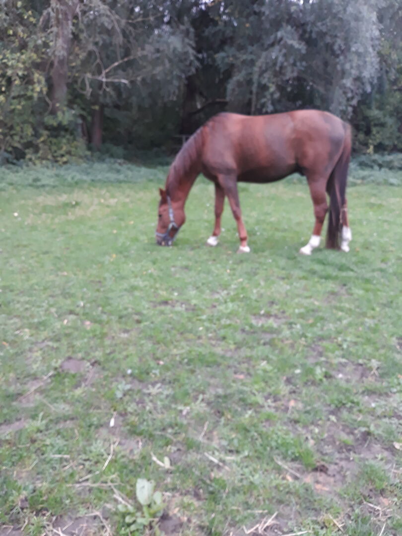 Poszukuje partnera zastępczego dla trottera w Bochum - Witam nazywam się Bettini i jestem kłusakiem, który kiedyś również się ścigał.Szukam kogoś kto będzie mnie 1-2 razy w tygodniu pieścił,lonżował lub w inny sposób zapewniał mi zajęcie z ziemi.Właściwie jestem całkiem miłym kopniakiem, nie gryzę ani nic w tym stylu, ale pokażę Ci wyraźnie czy Cię lubię czy nie.Jeśli mam do Ciebie zaufanie jestem do dyspozycji prawie na wszystko.Jeśli chciałbyś dowiedzieć się o mnie więcej i czujesz się zaadresowany to odezwę się do Ciebie :-)