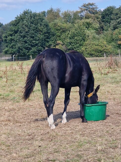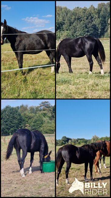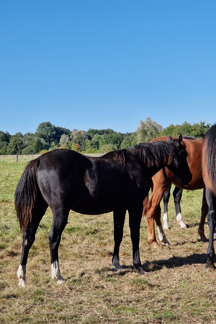 Potomstwo reiningowe z efektem wow - ogier rasy Black Quarter Horse z doskonałym rodowodem - Lokalizacja: 29227 Celle Treats N Diamonds - piękny młody ogier rasy Quarter Horse o doskonałych podstawach, mocnych stawach i bardzo dobrym umięśnieniu. Jest już dobrze rozwinięty i zdrowy. Jego prawidłowa budowa, harmonijny wygląd i wspaniały kolor (czarny) sprawiają, że przyciąga wzrok i ma potencjał na przyszłość - zarówno w sporcie, jak i rekreacji. Urodził się w 2024 roku z ostatecznym wzrostem około 152 cm. Tristan dorasta w środowisku hodowli ogierów i jest bardzo dobrze zsocjalizowany. Jest przyjazny, ciekawski, zorientowany na ludzi i chętny do nauki. Zna już weterynarza i kowala, jest wyszkolony, zaszczepiony i odrobaczony zgodnie ze swoim wiekiem. Jego rodowód nie pozostawia nic do życzenia: Pochodzi z pierwszorzędnej linii reiningowej i jest zarejestrowany w NRHA Niemcy. Tristan jest synem One Shiney Treat, syna wartego 10,2 miliona dolarów ogiera Shining Spark. Matka One Shiney Treat, HAGANDAZ, to zarabiająca pieniądze i produkująca córka GRAYS STARLIGHT. Wygrała 49 289 dolarów w zawodach NCHA i NRCHA, a także urodziła odnoszące sukcesy potomstwo o łącznej wartości ponad 65 616 dolarów (NRHA, NCHA i NRCHA). Matka Tristana, Miss Tiffany Chic, była z powodzeniem pokazywana i jest córką Puro Chic. Rodzeństwo Tristana z tej samej linii żeńskiej odnosiło już sukcesy w sporcie reiningowym (Open). Aktualny 6-panelowy test jest dostępny dzięki rodzicom i dodatkowo dzięki jego własnemu testowi - jest N/N. Treats N Diamonds będzie sprzedawany z papierami AQHA i paszportem konia. Dzięki pierwszorzędnemu rodowodowi reiningowemu i depozytowi NRHA Germany, wszystkie możliwości są dla niego otwarte - czy to w sporcie, na pokazach, czy jako wszechstronny partner rekreacyjny.