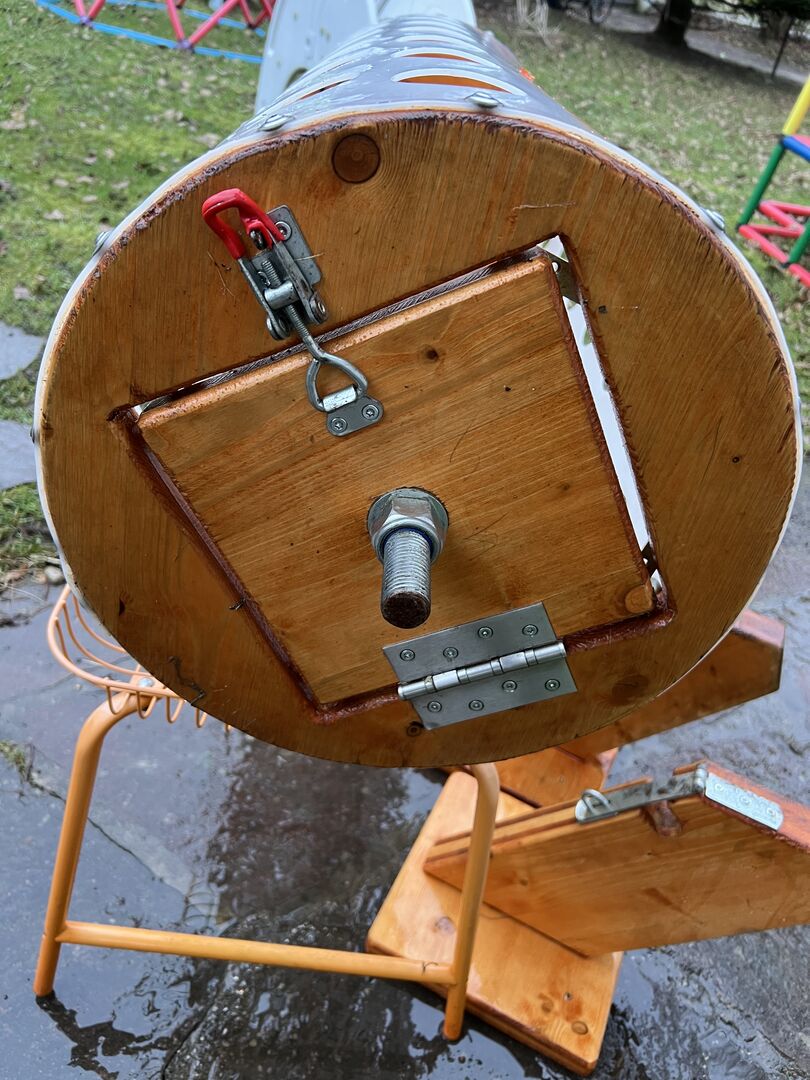 MODEL 40 * Na ok. 7 - 8 kg siana * HORSEFEED BOX High Tech Plate zgodność z żywnością wg UE 10/2011 * tylko ok. 6 kg wagi własnej * Rozmiar otworu 6,5 cm * Boki z drewna modrzewiowego (modrzew syberyjski) * System szybkiego napełniania