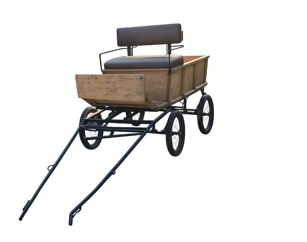 Szczegóły: Solidna metalowa rama z drewnianym nadwoziem Tapicerowane siedzisko z oparciem 4 koła, płynna jazda Dyszel dla Shetty / małego kuca Dobrze nadaje się do jazdy Powóz jest prosto zbudowany, stabilny i daje dużo frajdy z jazdy. Idealny do przejażdżek rekreacyjnych lub na podwórko dla kucyków.