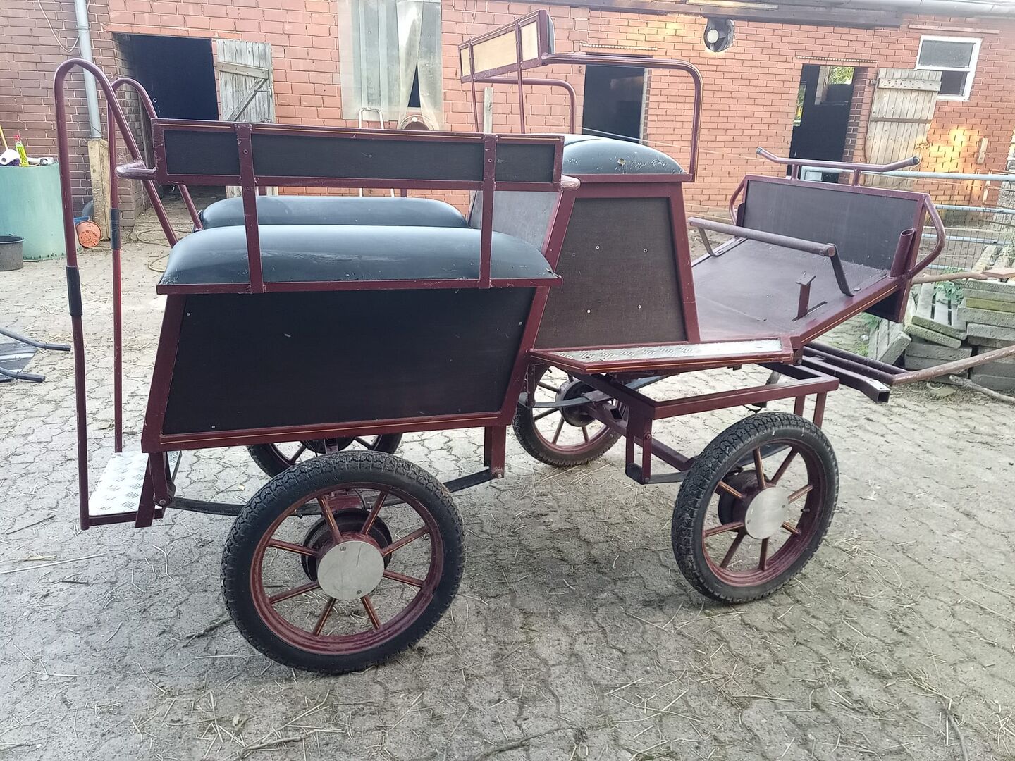 Nadaje się dla większych kuców (np. Haflinger, Tinker, koń fiordzki, kuc jeździecki, Welsh C +/- itp.) Powóz posiada działający hamulec nożny.
