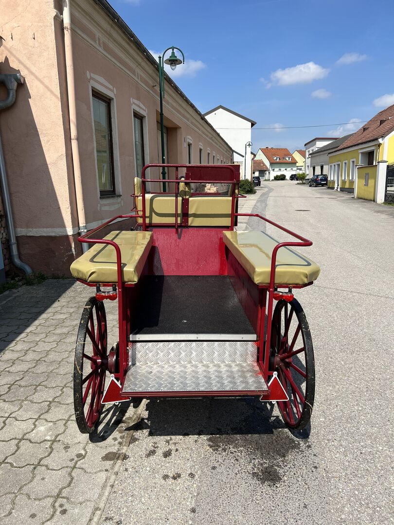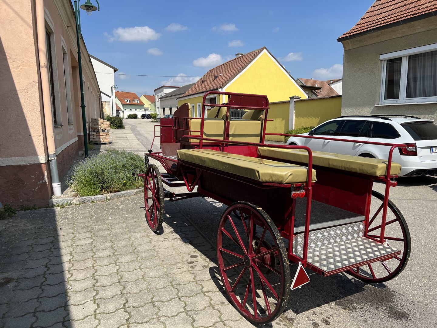 Powóz / Wagonette na sprzedaż - Niniejszym sprzedaję moją Wagonette - była używana z końmi rasy warmblood (1,65m). Może być używana z jednym lub dwoma końmi. Tylne koło i hamulec postojowy. W razie pytań proszę o kontakt. Cena VHB