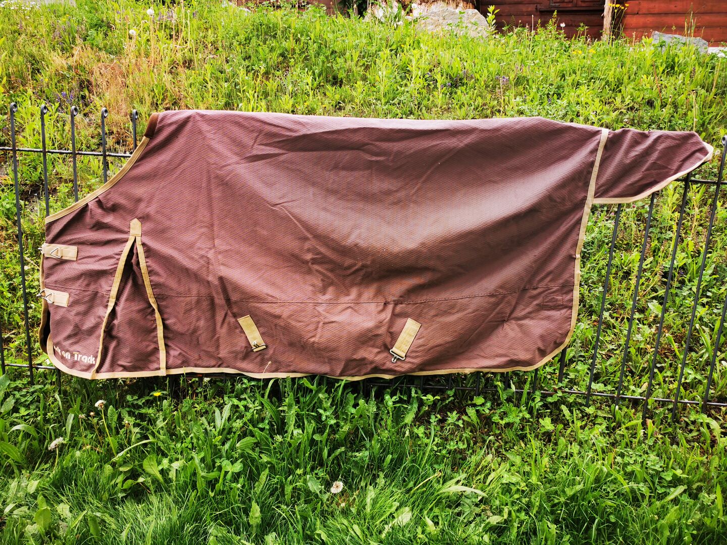 Mało używany wodoodporny dywanik zewnętrzny 145cm. Przeszycie na boku, poza tym brak wad. NP 330.-.