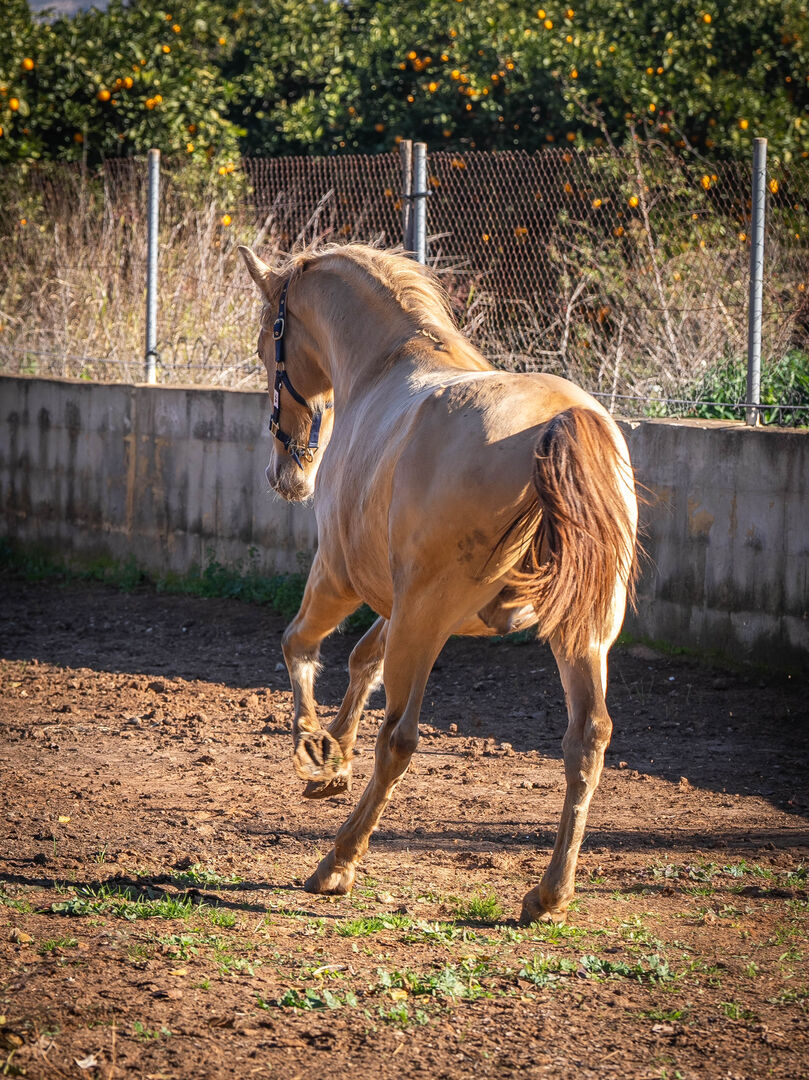 PRE Ruffy isabello / podwójna perła / pełne papiery - RE Ruffy Isabelo - prawdziwy skarb! ✨ Ruffy Isabelo to młody, przytulny i zabawny ogier, który już teraz zachwyca swoim barokowym typem. W wieku dwóch lat mierzy obecnie 155 cm, ale będzie oryginalnym przedstawicielem swojej rasy przy szacowanym wzroście 162 cm. Na szczególną uwagę zasługuje fakt, że jest on nosicielem dwóch genów PRL, a zatem zawsze przekazuje jeden gen PRL - absolutnie przyciąga wzrok! Ruffy uwielbia być przytulany ❤️ i chciałby jeść przez cały dzień - absolutny czarodziej! Pomimo swojej zrelaksowanej natury, ma imponujący chód i jest idealny do jazdy rekreacyjnej, hodowlanej lub roboczej.