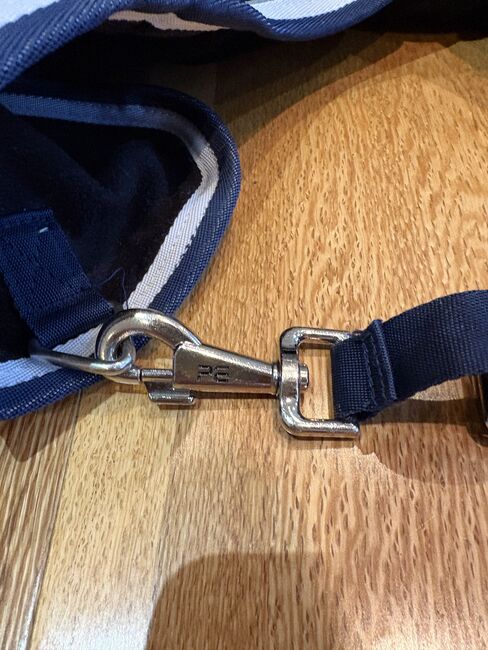 Premier Equine Rug Liner / Under Rug - Navy - Wyściółka pod derkę Premier Equine. Zaprojektowana do wpinania w kompatybilne derki Premier Equine, aby zapewnić dodatkowe ciepło. Lekka i oddychająca, zapinana na klips na klatce piersiowej. Używany, ale w dobrym stanie z normalnymi oznakami zużycia.