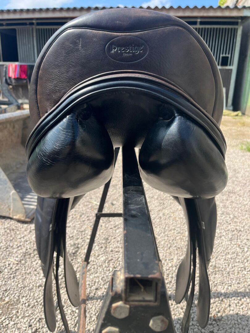 Prestige Doge 18 cali czarny - Sprzedaję moje siodło ujeżdżeniowe Prestige w kolorze czarnym z 18-calowym siedziskiem.