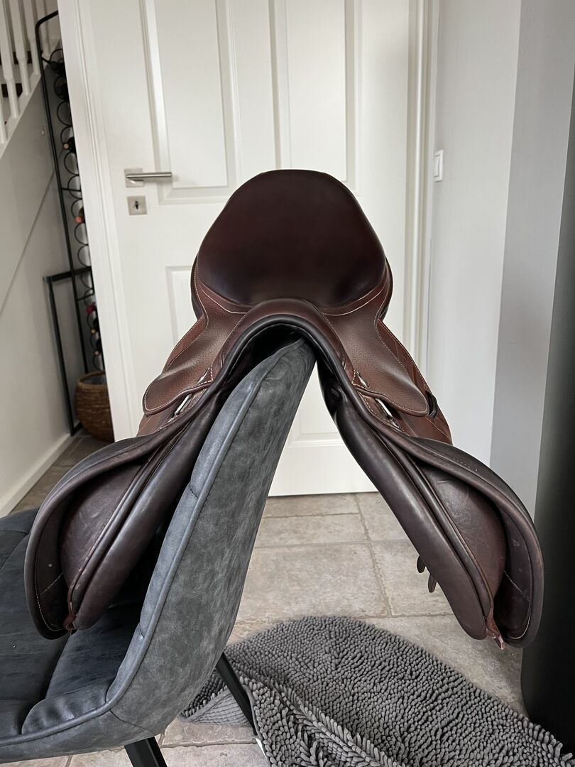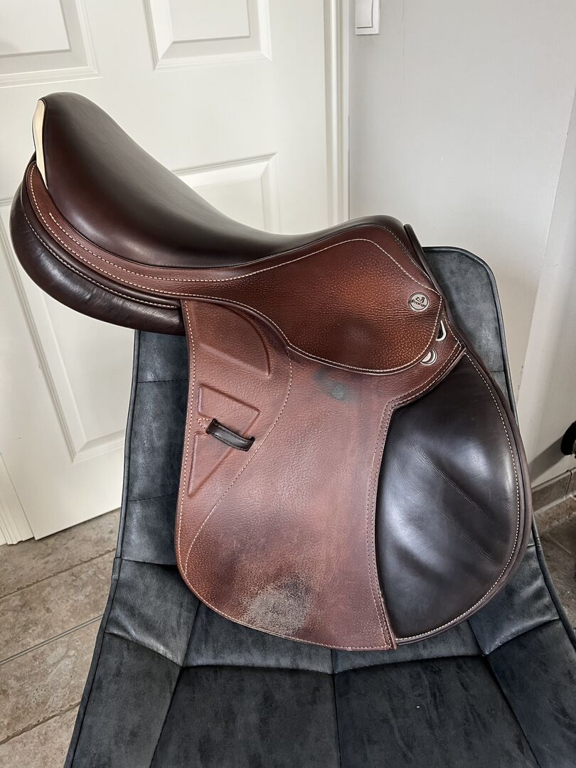 Prestige Paris X 17/32 brąz - 2-letnie siodło, nieużywane od stycznia 2021 r., ponieważ kucyk był kontuzjowany i już nie skacze. Używane, ale bardzo dobrze zachowane siodełko firmy Prestige. Zużycie tylko w obszarze strzemion (po podciągnięciu, ponieważ nie używano ochraniaczy na strzemiona). Co w rzeczywistości wygląda gorzej niż na zdjęciach... poza tym żadnych dziwactw ani tym podobnych. Cena pierwotna 3300 EUR. Wysyłka możliwa za zaliczeniem pocztowym. W innym przypadku odbiór do jazdy próbnej po wpłaceniu kaucji w wysokości ceny zakupu. Siodełko ma szerokość siedziska 17 i przelotki 32.