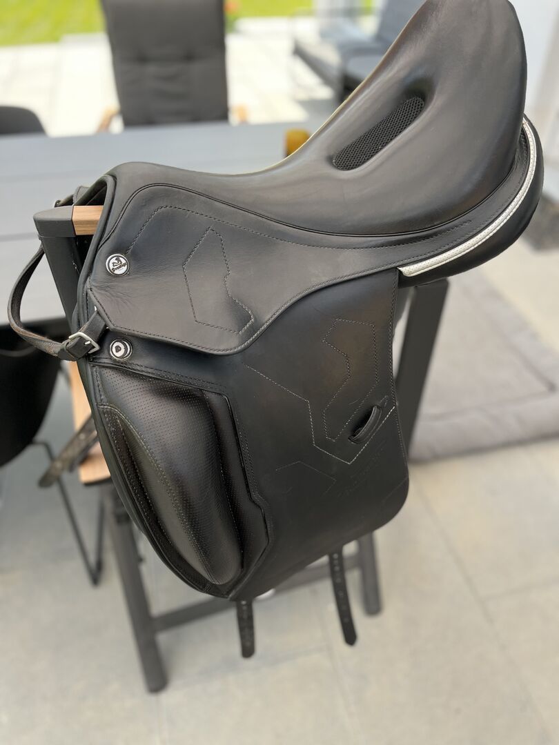 Szczegóły: - Marka: Prestige - Model: X-Breath Dressage K Lux - Rozmiar: 17" - Kolor: czarny/srebrny - Siedzisko: wygodne i dobrze zbudowane dla średnich i większych koni - Stan: bardzo dobry, dobrze utrzymany, brak uszkodzeń skóry lub paneli, był regularnie konserwowany - Rok produkcji: 2020 - Cechy szczególne: bardzo dobrze pasuje na mojego konia, panele nigdy nie były regulowane, lekka, oddychająca skóra zapewnia wygodną jazdę