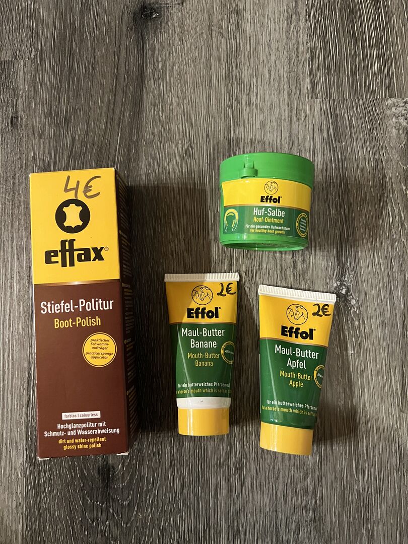 Na sprzedaż są NOWE próbki Effol. 2x masło do ust (1x jabłko, 1x banan) i 1x maść do kopyt. Cena 2€ za sztukę