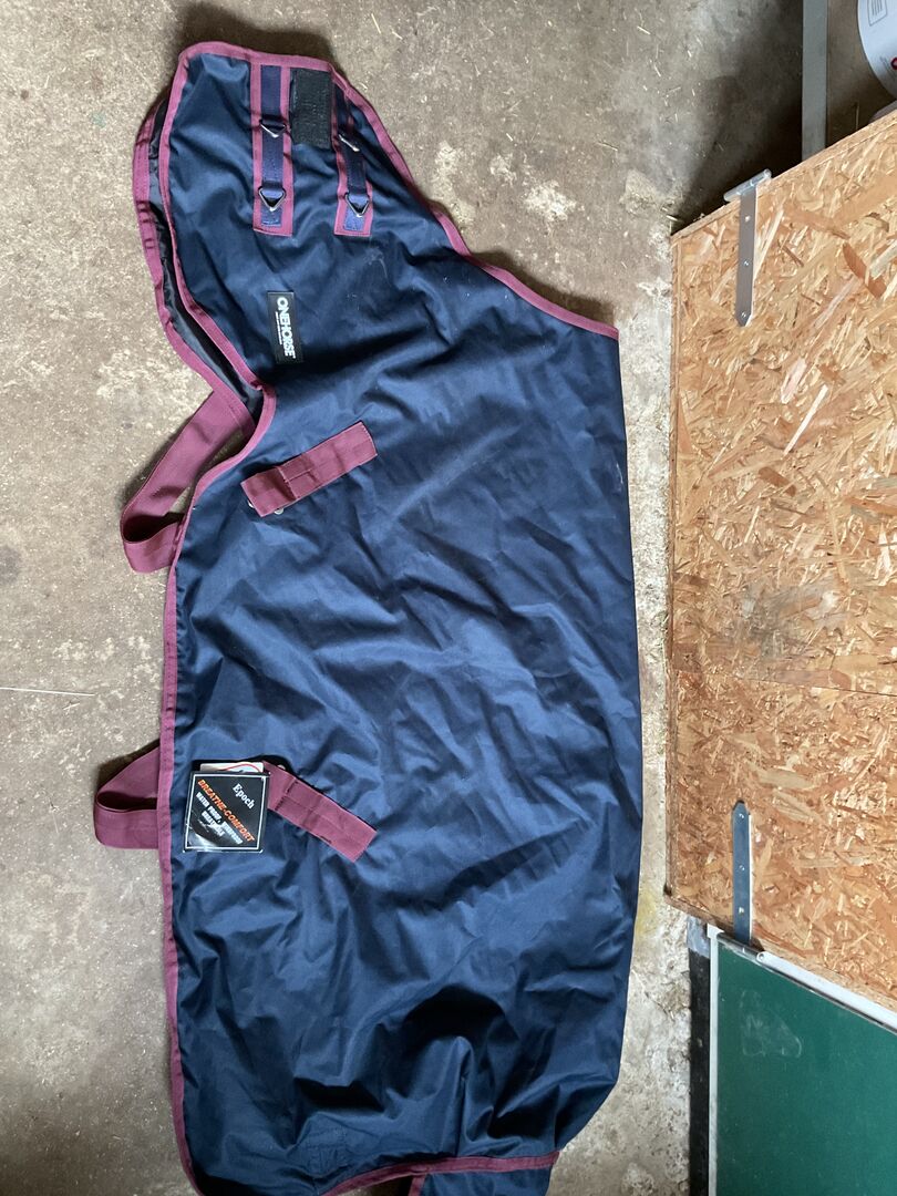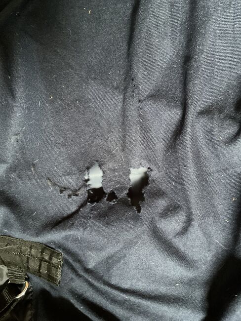 Przejściowy pokrowiec przeciwdeszczowy z polarem - Sprzedaję derkę przejściową z polarowym podszyciem, która niestety jest pęknięta w dwóch miejscach. Dywan nigdy nie był na koniu i jest praktycznie nowy, z wyjątkiem tych dwóch uszkodzonych obszarów