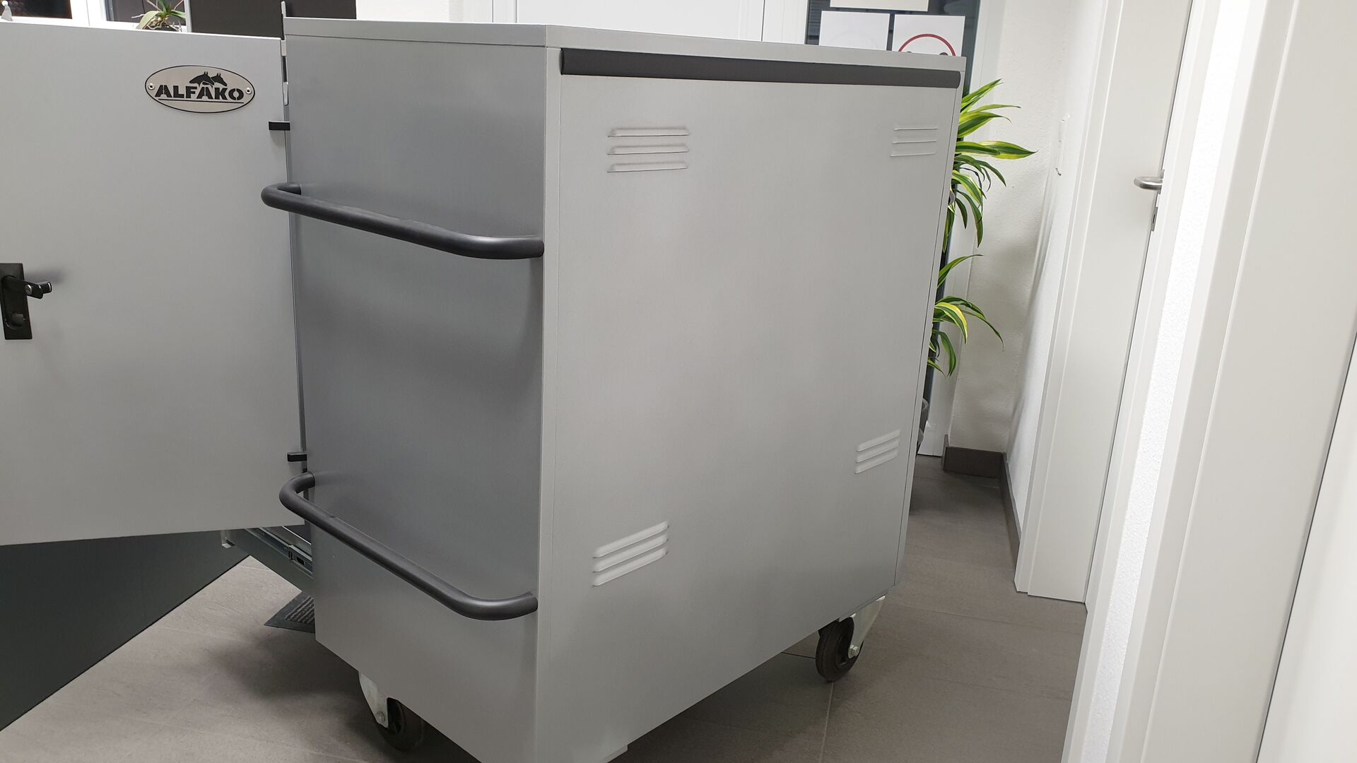 Hala jest w pełni zamykana i sprzedawana z 2 kluczami. Szafka pod siodło jest wyposażona w cztery koła z pełnej gumy (dwa koła obrotowe z hamulcem postojowym i dwa koła sztywne) o średnicy 160 mm.