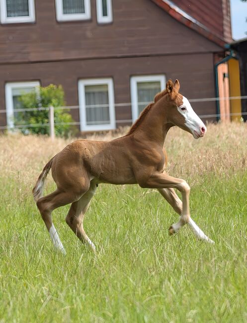 Przyciąga wzrok wyraźną muskulaturą - Lokalizacja: 29221 Celle Cole - jego piękny kolor, niebieskie oko i idealny wygląd sprawiają, że przyciąga wzrok. Urodził się w 2025 roku, a jego ostateczny wzrost szacuje się na 150 cm. Cole to kompaktowy, silny i mocno umięśniony ogier rasy Quarter Horse. Jego dobra budowa, zdrowie i przyjazny, zorientowany na ludzi charakter przemawiają na jego korzyść. Cole jest dobrze zsocjalizowany, zna swojego weterynarza i kowala i dorasta w małej grupie klaczy i źrebiąt. Jego spokój, chęć do nauki i otwartość sprawiają, że jest łatwy w obsłudze i bardzo przyjemny w kontakcie. Dzięki pierwszorzędnemu rodowodowi reiningowemu idealnie nadaje się do sportu, zawodów lub rekreacji. Cole wykazuje imponujący ruch i ma potencjał, by stać się naprawdę atletycznym koniem. Ponieważ jest ogierem perspektywicznym, chętnie zostanie przekazany w odpowiednie ręce, ale jeźdźcy rekreacyjni o wysokich wymaganiach również mogą być z niego zadowoleni. Badanie kliniczne zostanie zlecone przez hodowcę w ramach sprzedaży.