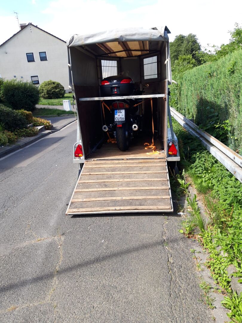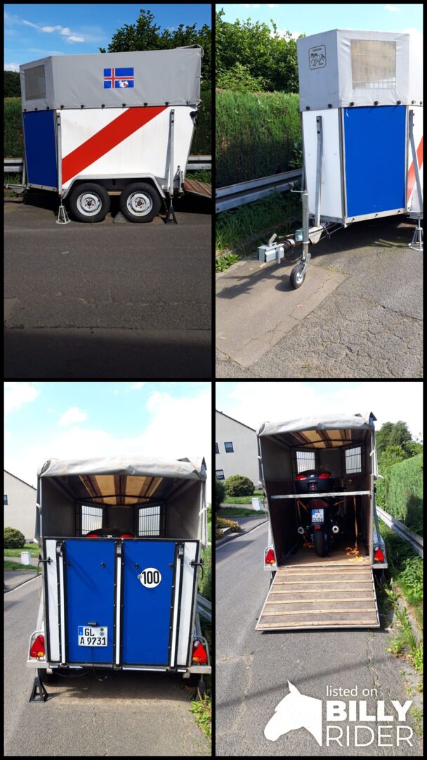 Przyczepa dla małych koni - Oferuję przyczepę do przewozu małych koni. Przyczepa jest obecnie używana jako garaż na motocykl. Ma dopuszczalną masę całkowitą 1500kg. Nowe opony, nowe hamulce z klockami hamulcowymi, nowe oświetlenie, wtyczka 13-pin, nowe koło kopiujące, nowe w pełni ocynkowane błotniki, MOT do 12/24, rama w całości ocynkowana. Prawo jazdy 100 km/h. Sprzedaż prywatna bez gwarancji i zwrotu. Tylko odbiór osobisty