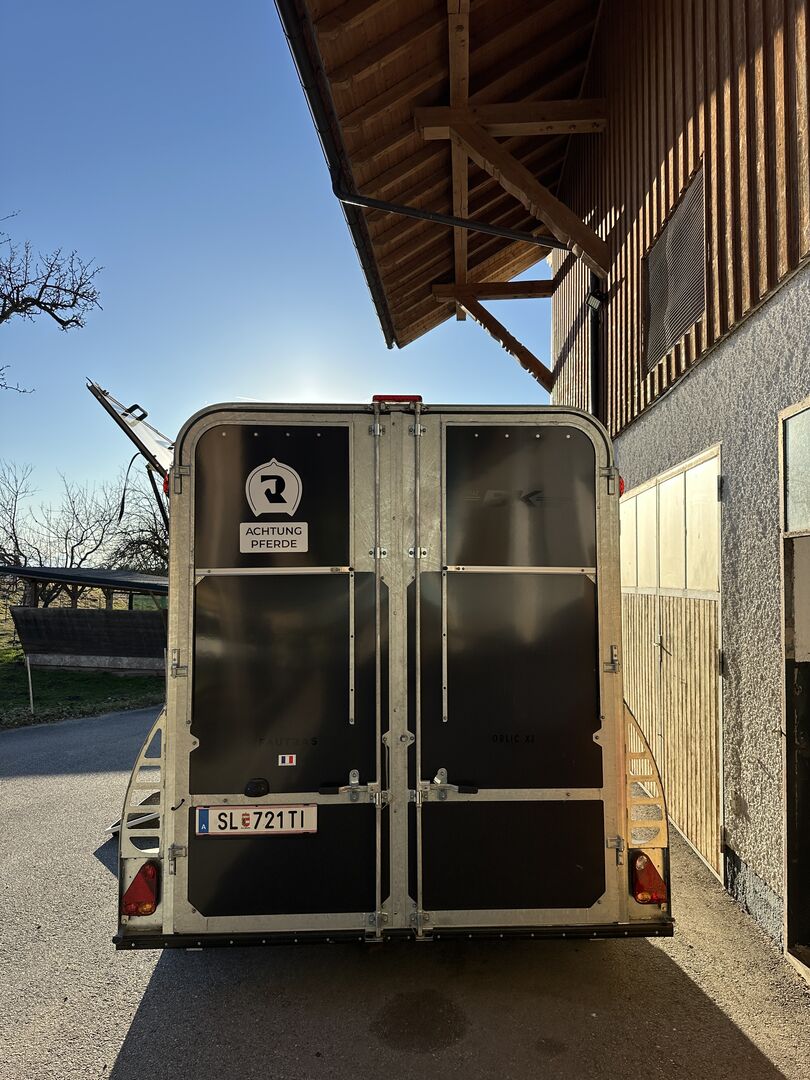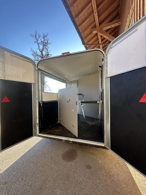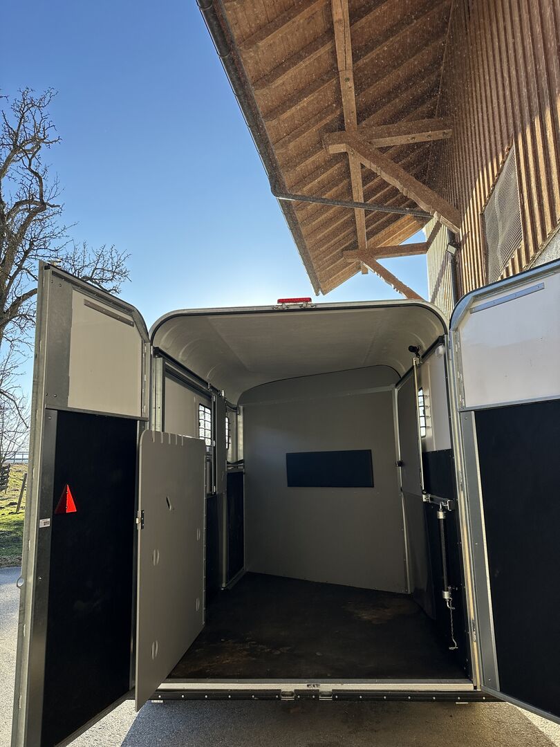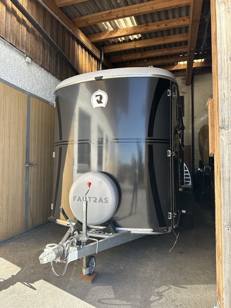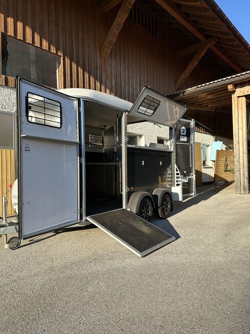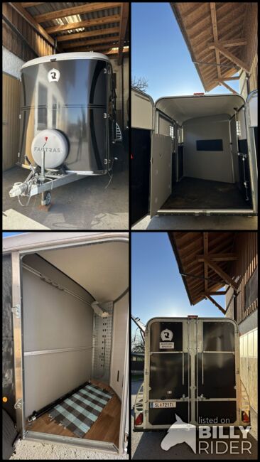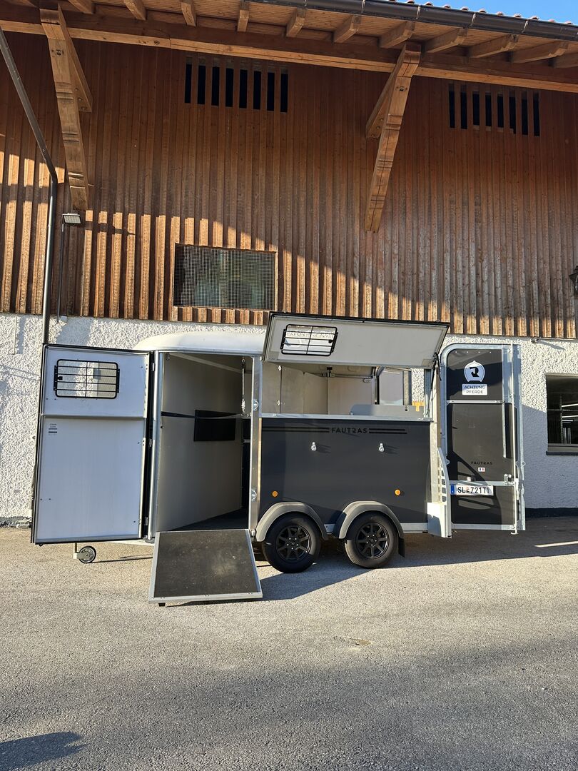 Przyczepa do przewozu 2 koni Fautras - Przyczepa do przewozu koni Oblic X2, jak nowy jako pojazd rezerwowy, tylko 5x w użyciu, pochyła rama, duży piękny grzebień siodła w tym 2 uchwyty na siodła, przednie wyjście, kamera, zawsze pod dachem, ...